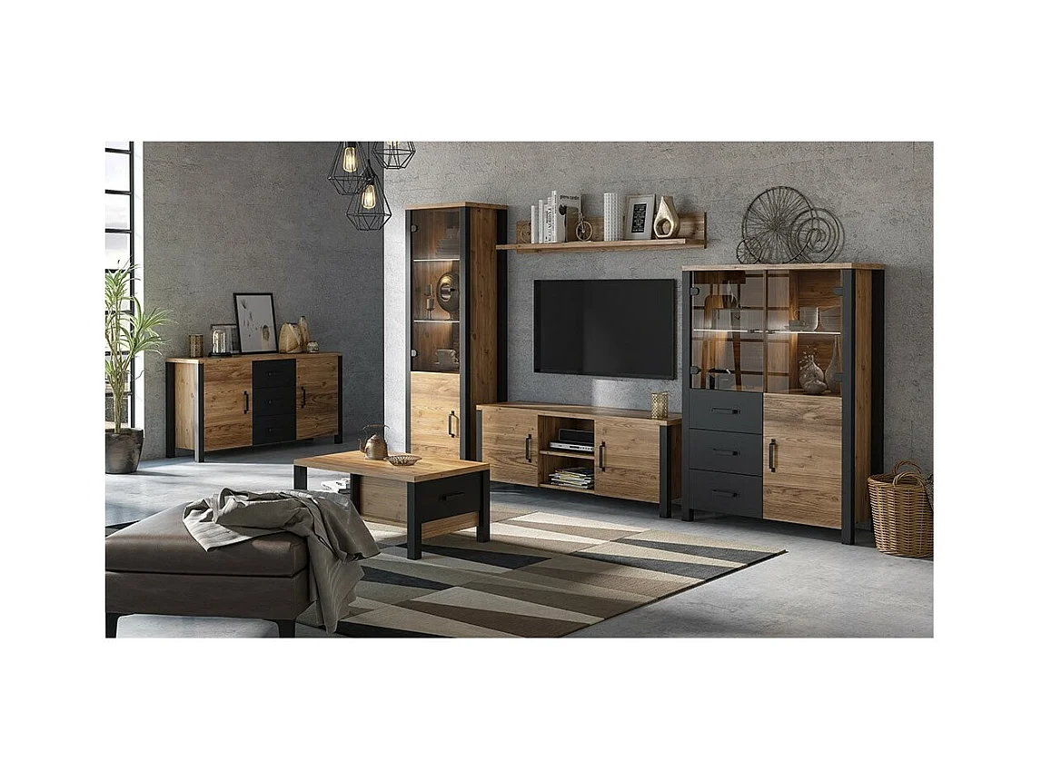 Vitrina colección WINDSOR. Colores roble oscuro y gris antracita.