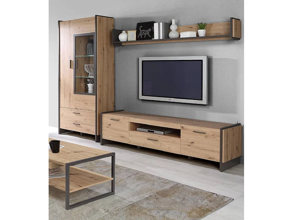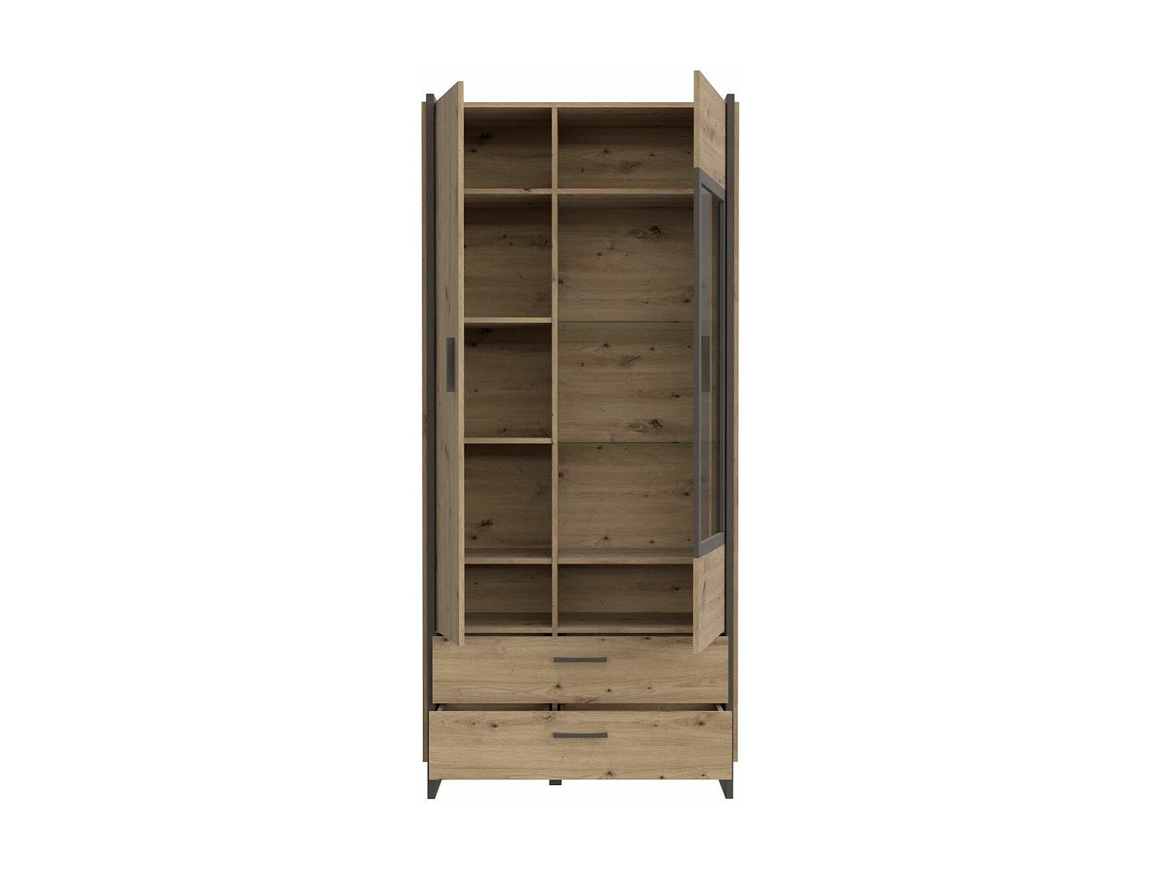 Vitrina alta de 205x92x41 cm con puerta acristalada, otra opaca y 2 cajones en beige Frank