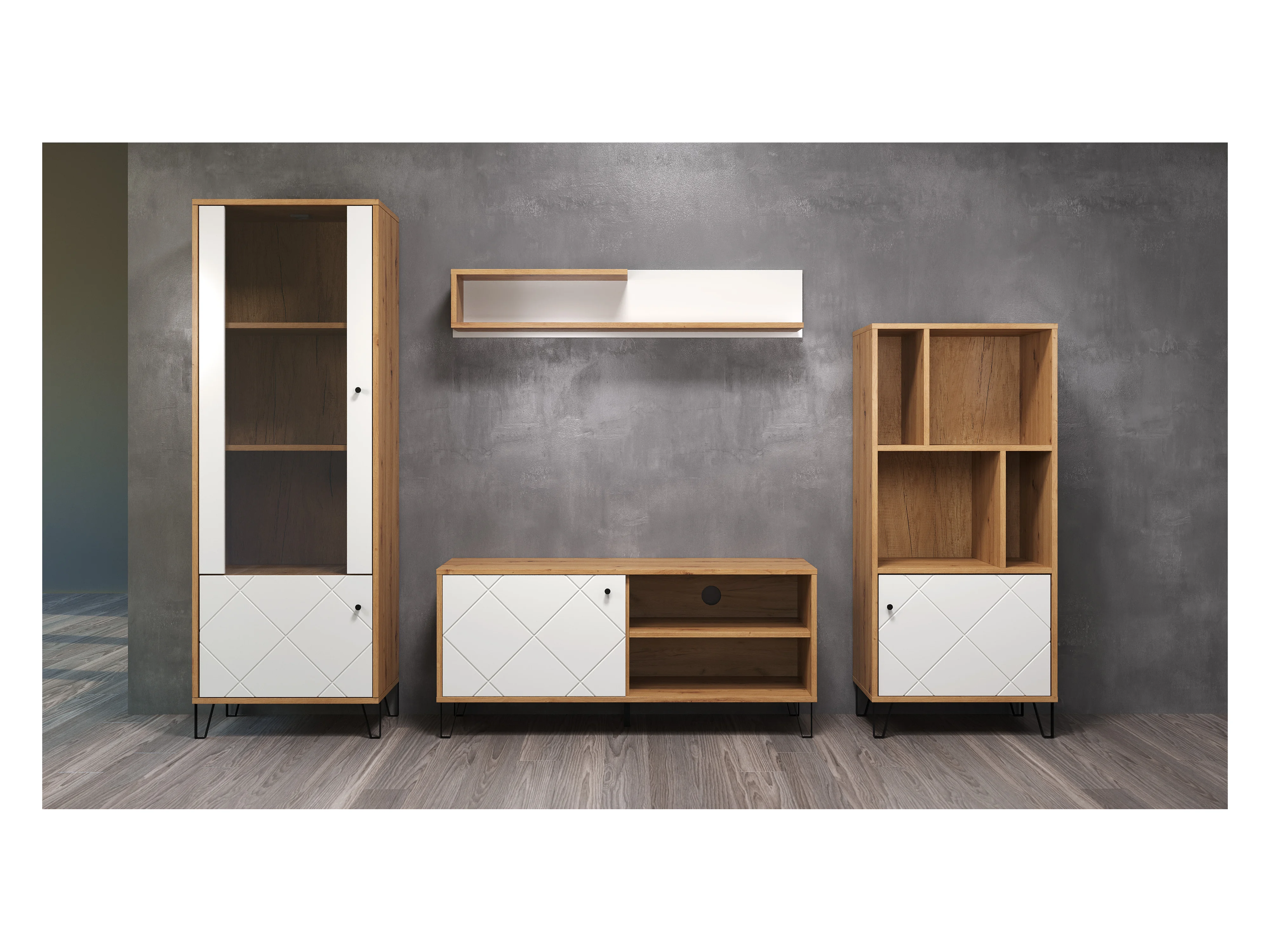 Vitrina artesanal Kidou roble y blanco mate 123 cm