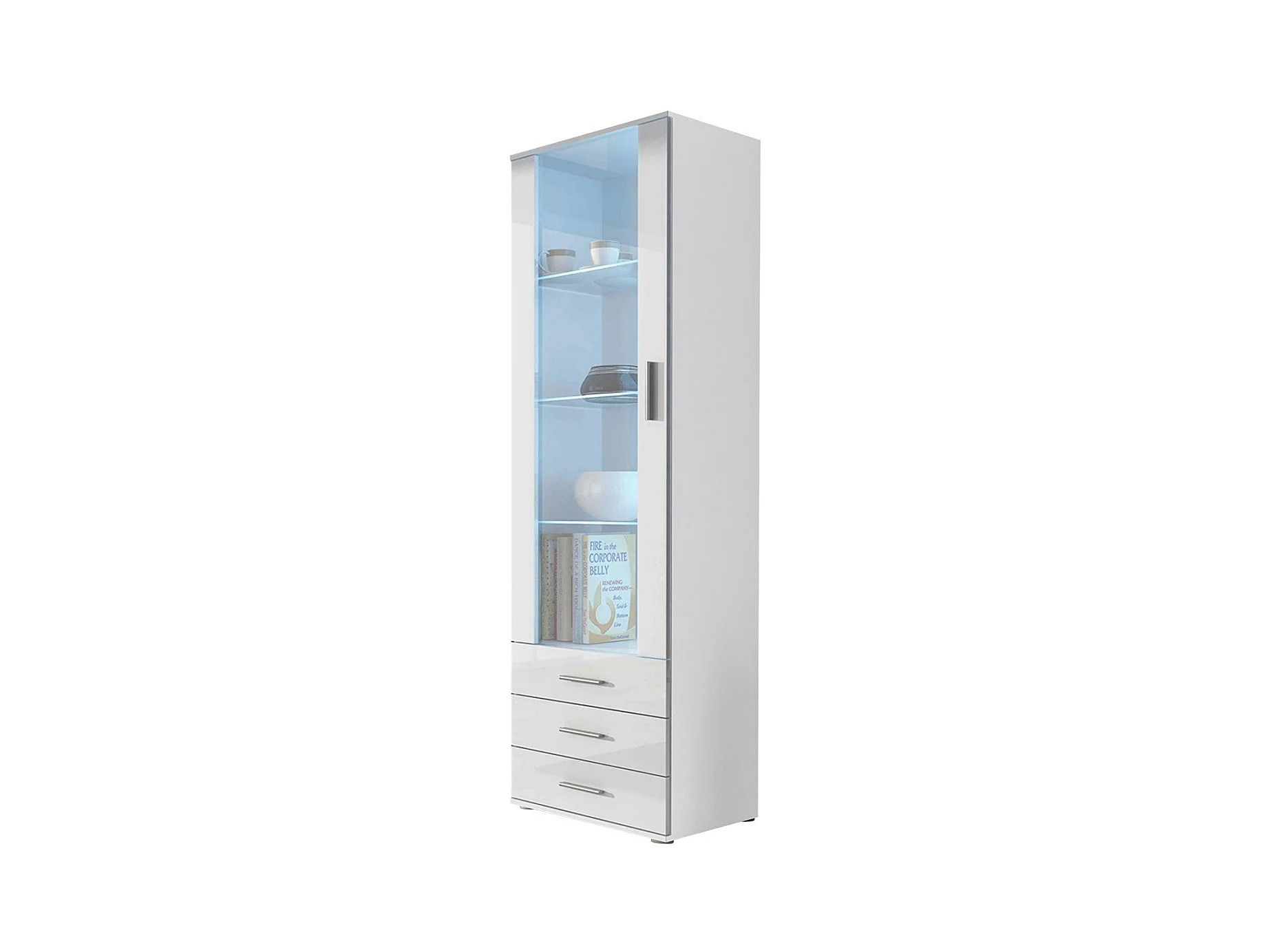 Estantería Tornola 105, Con puertas|Cerrable|Con cajones, Vidrio|Aglomerado laminado,