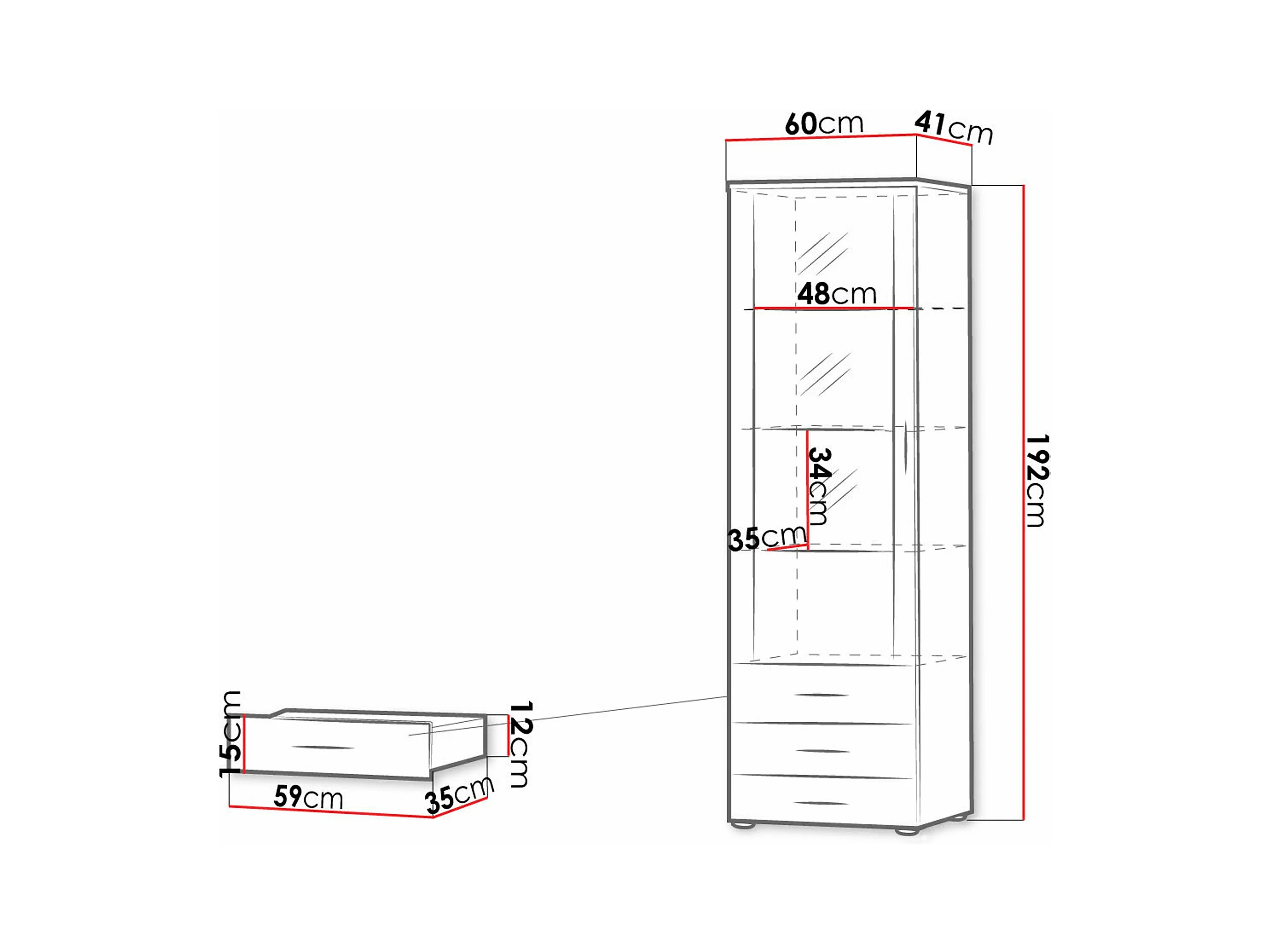Estantería Tornola 102, Con puertas|Cerrable|Con cajones, Vidrio|Aglomerado laminado,