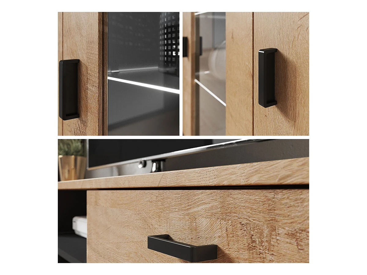 Estantería Tornola 105, Con puertas|Cerrable|Con cajones, Vidrio|Aglomerado laminado,