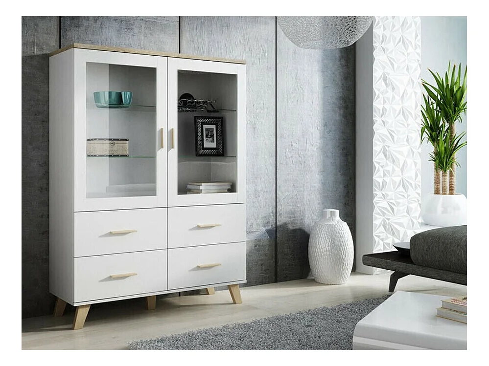 Estantería Tornola 102, Con puertas|Cerrable|Con cajones, Vidrio|Aglomerado laminado,