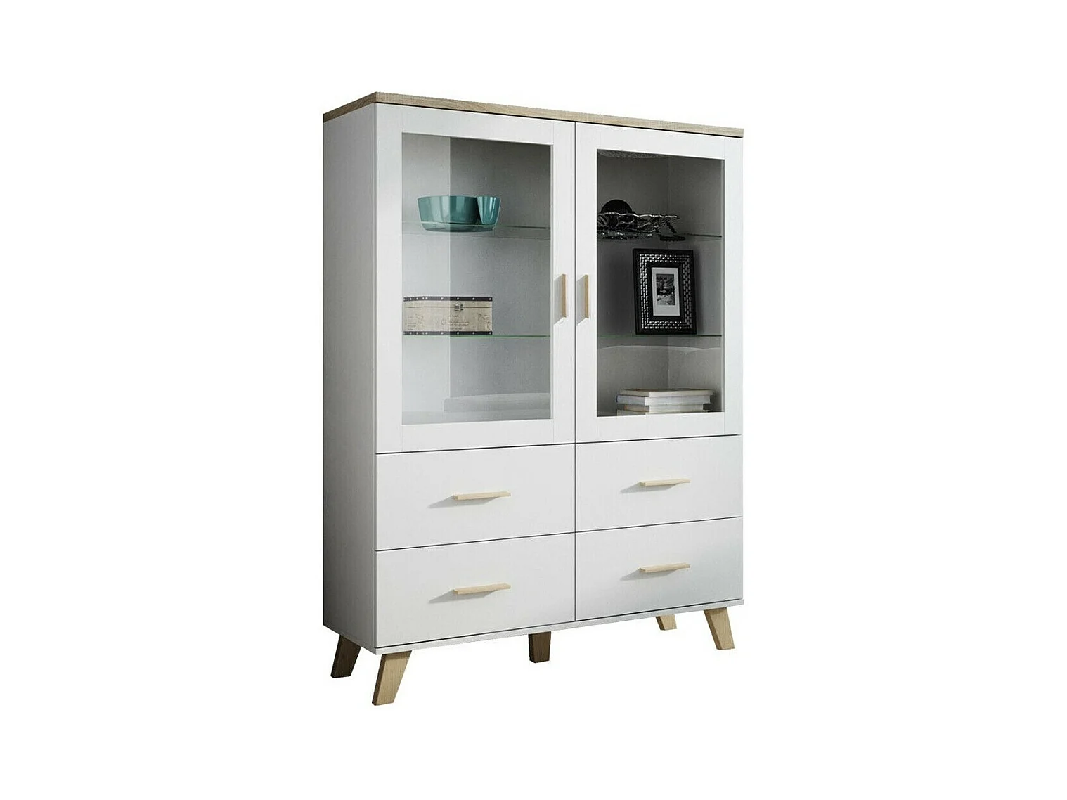 Vitrina Dvecchi, Aparador de exposición, Vitrina multiusos, Aparador de salón, 89x36 h203 cm, Blanco y Roble