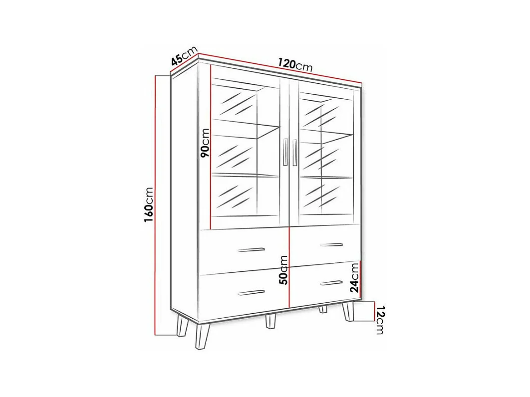Estantería Baltesi 120, Con puertas|Cerrable, Vidrio templado|Aglomerado laminado, 202cm