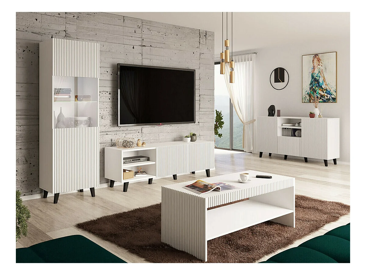 Cómoda Tucson 114, Blanco, Con cajones y puertas, Número de cajones: 1, 80x141x41cm