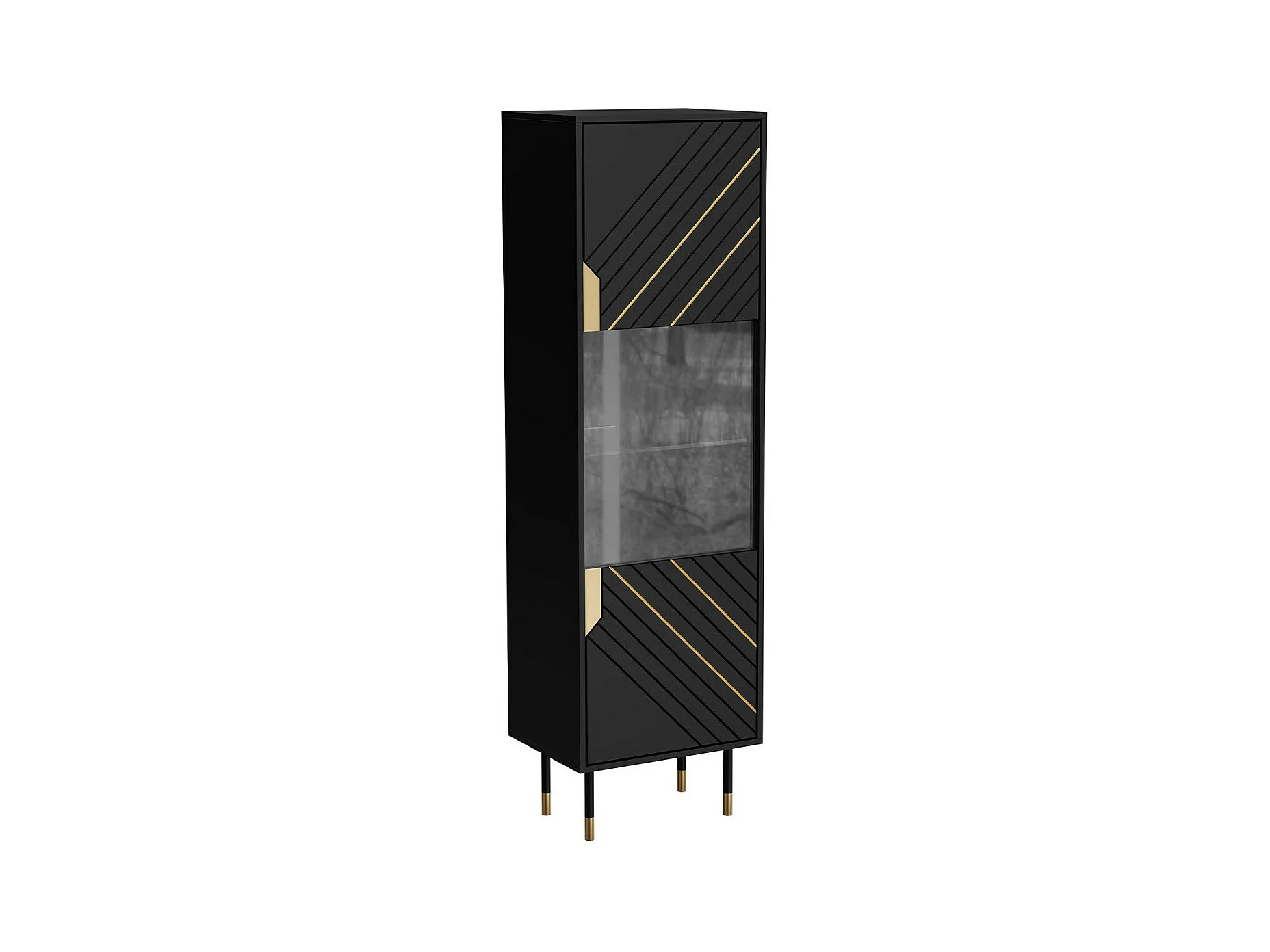 Vitrina negra brillante con puertas de cristal, con LED, con 3 estantes de cristal, 40 x 50 x 160 cm
