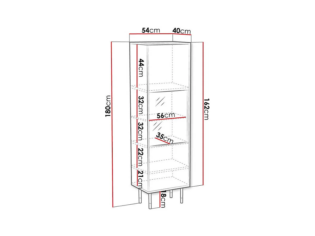 Estantería Elmteo 105, Con puertas|Cerrable, Vidrio templado|MDF|Aglomerado laminado,