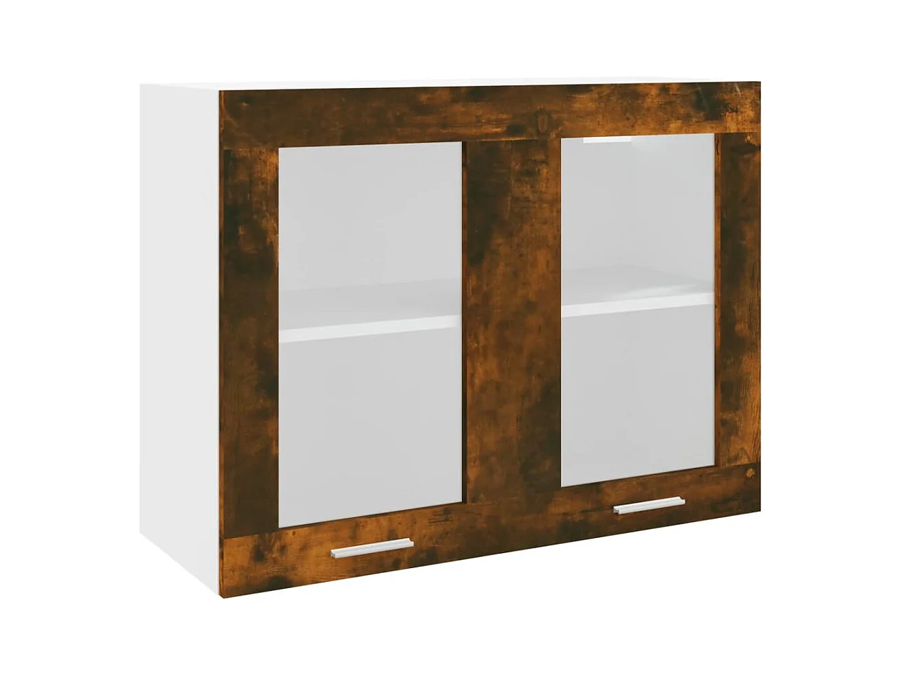 Vitrina colgante de cristal de madera de ingeniería de roble ahumado