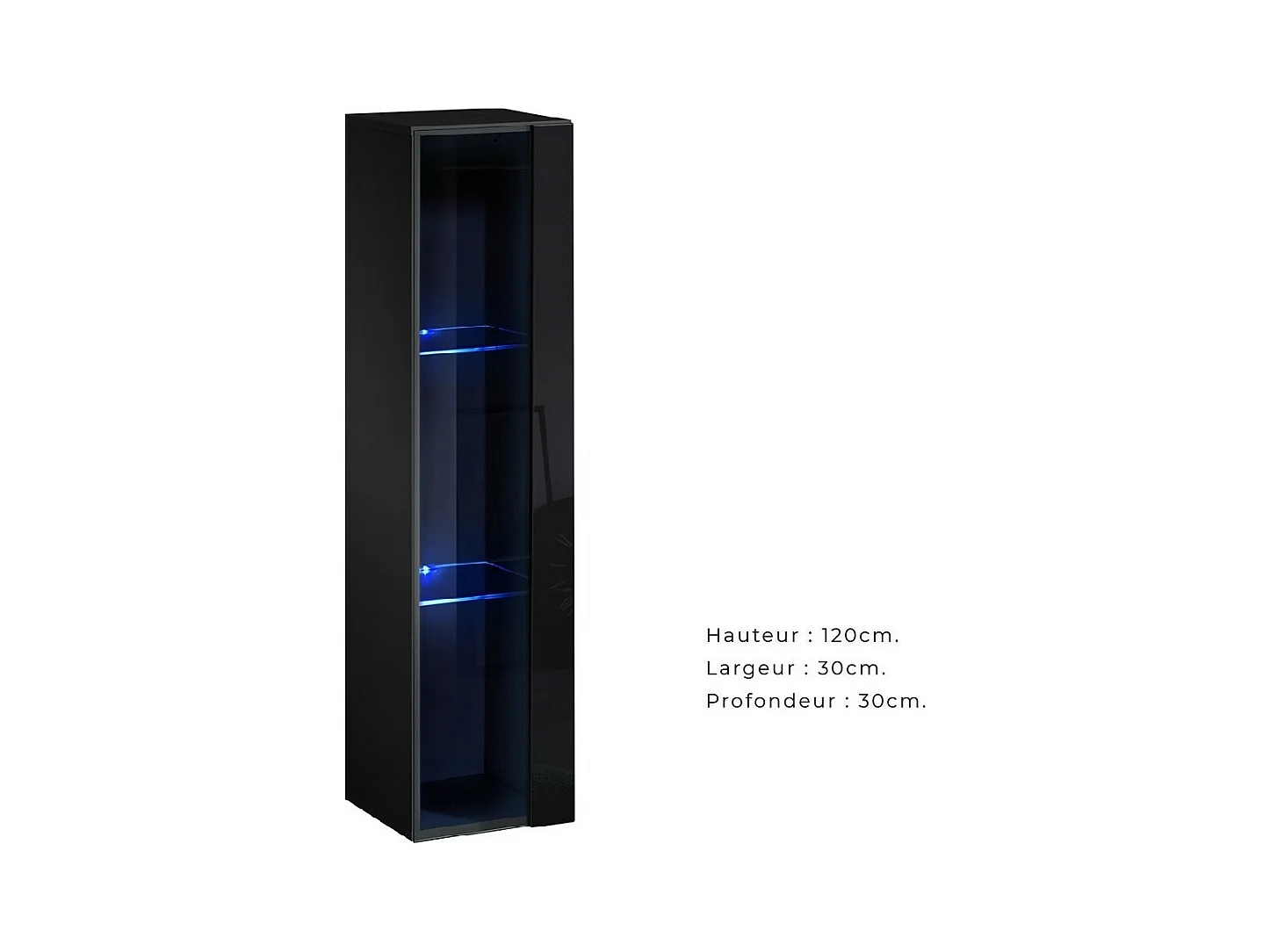 Vitrina suspendida, 1 puerta acristalada con LED integrado colección ZANTE. Color negro brillante con purpurina.