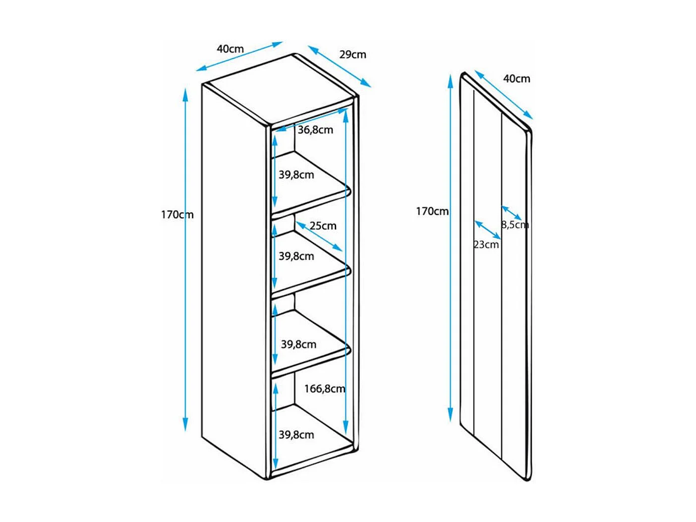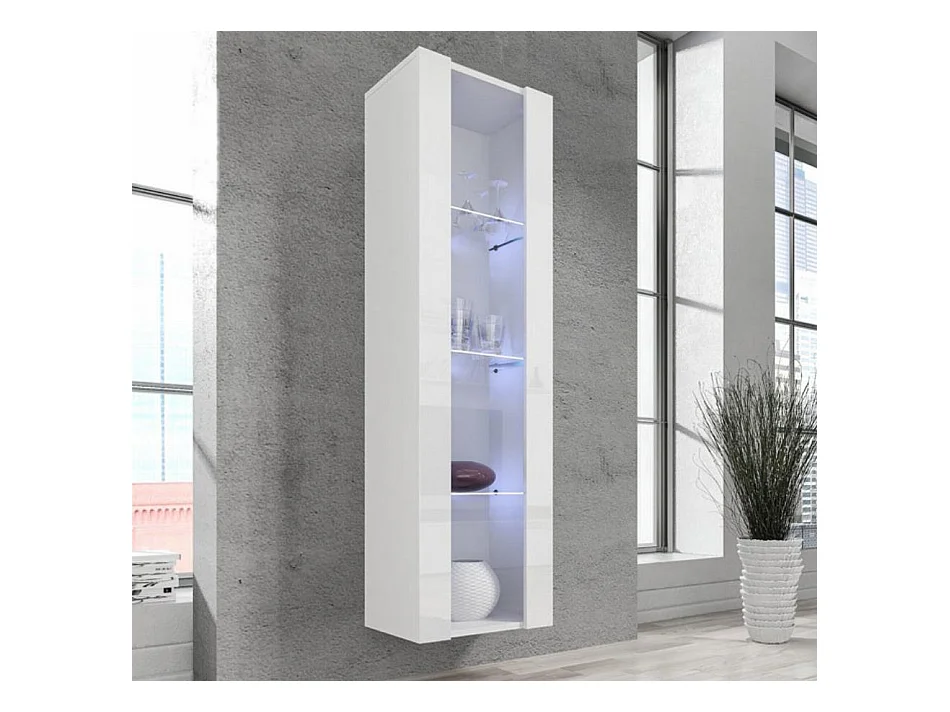Vitrina colgante para Salón comedor en Blanco con LED 40x29x170cm Nora V5