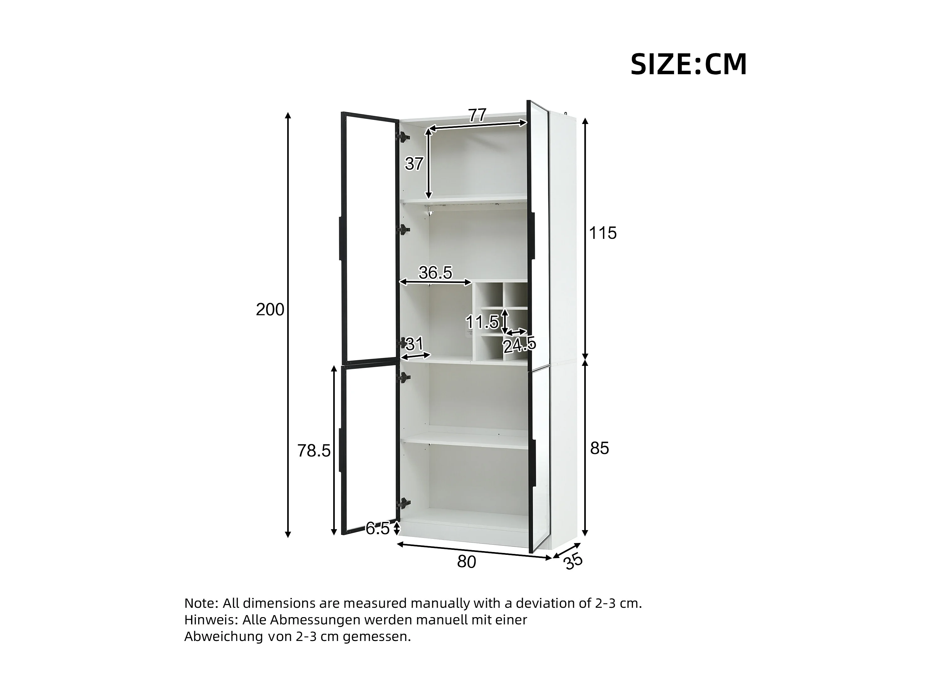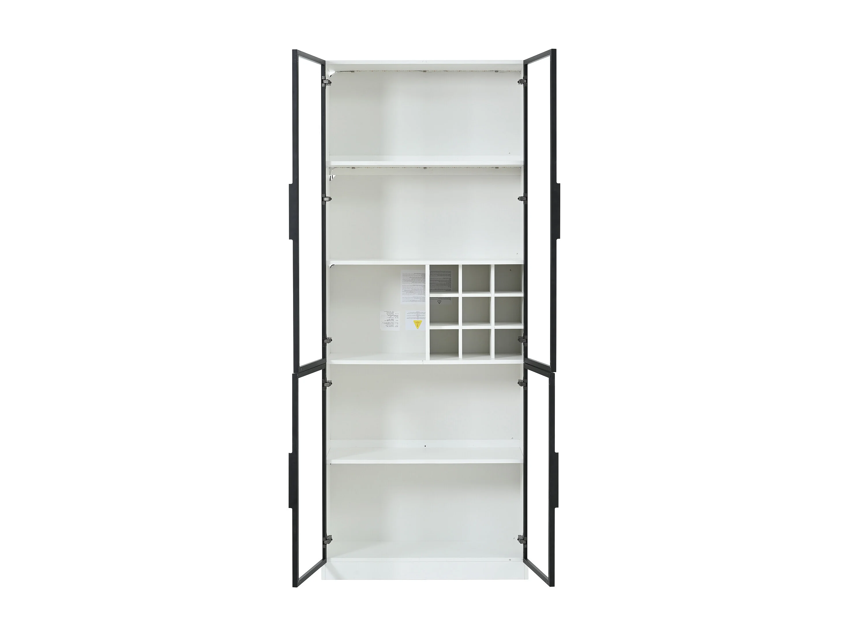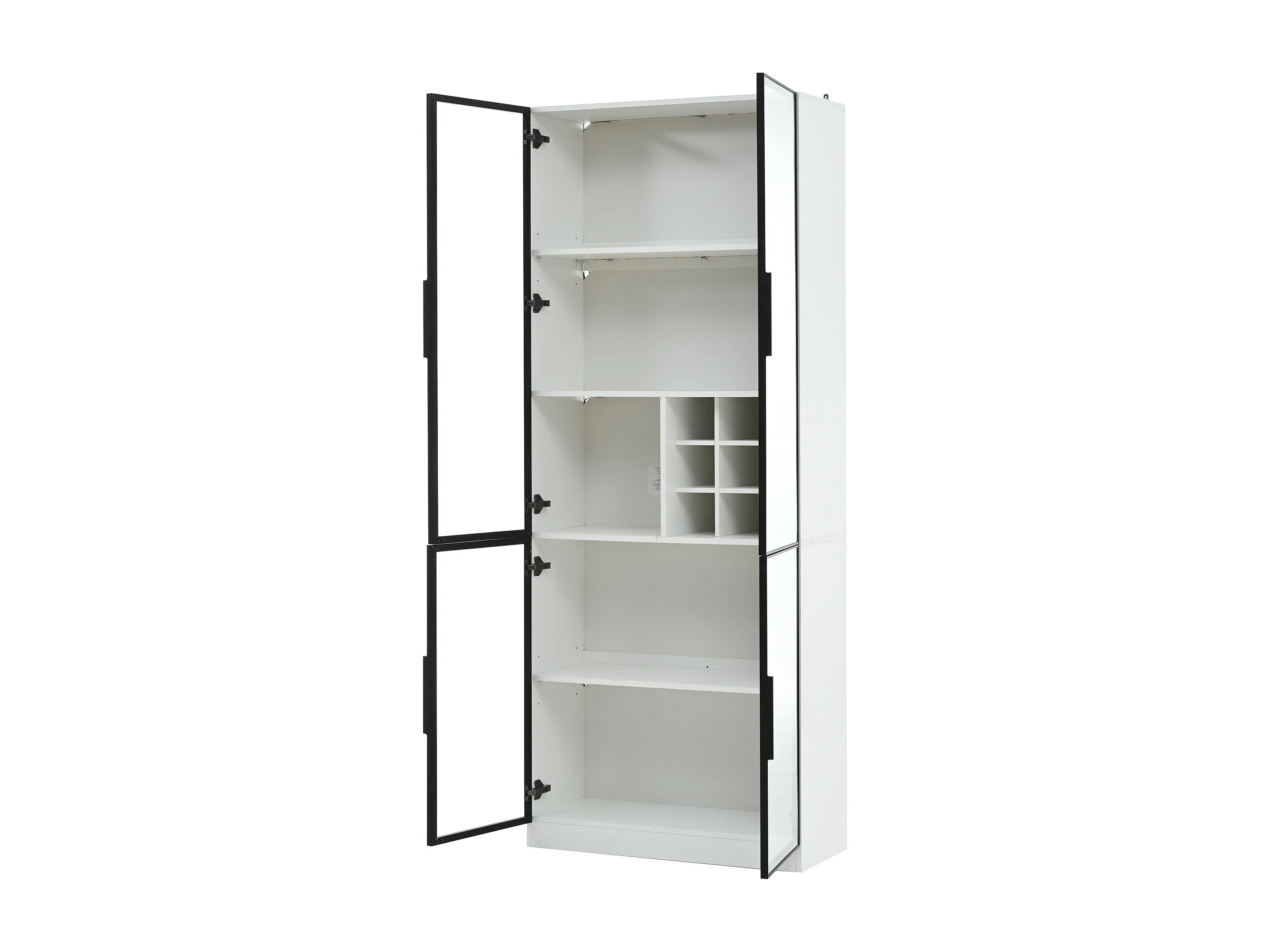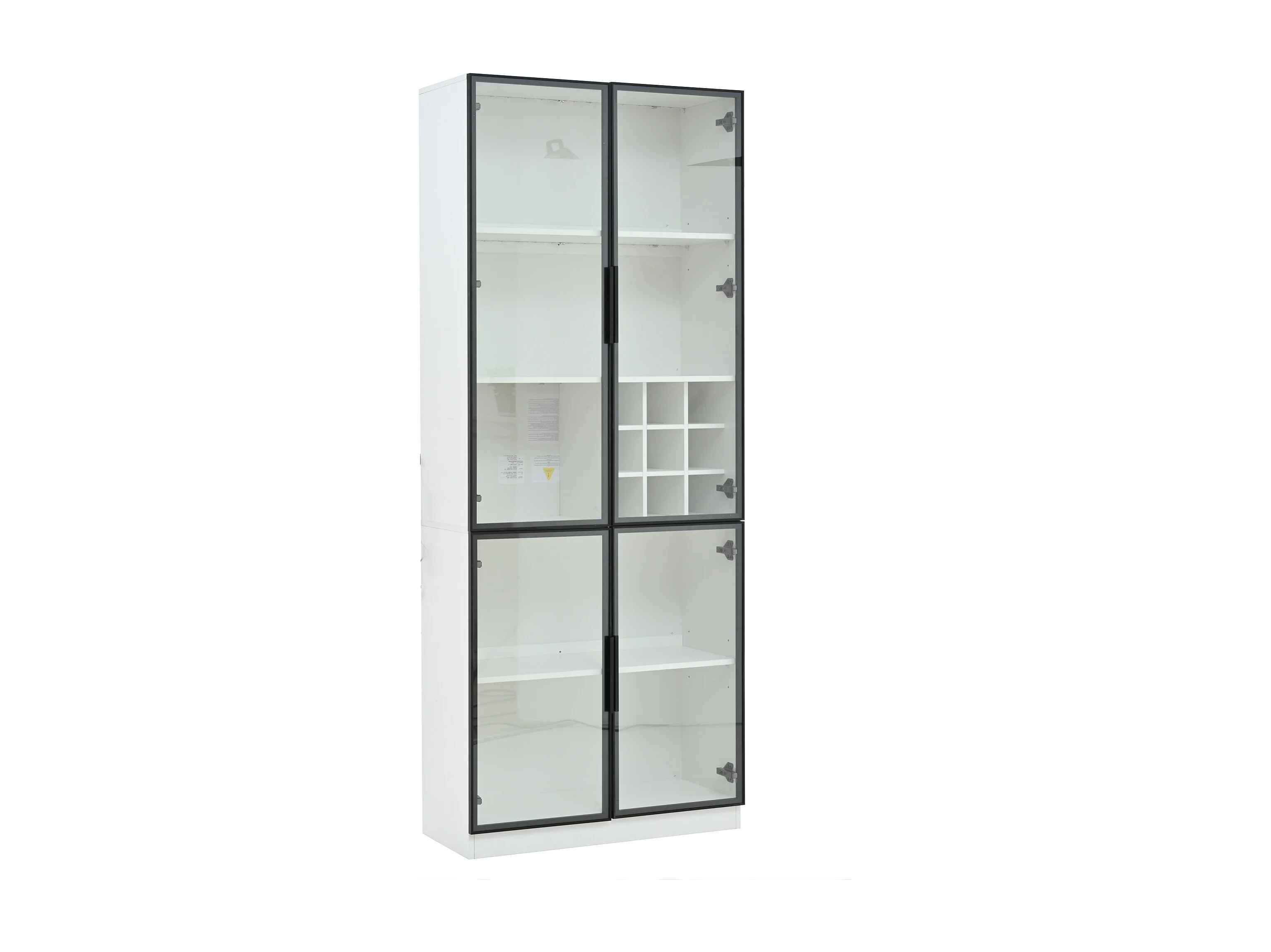 Vitrina con iluminación LED, 2 puertas de cristal y botellero - Blanca
