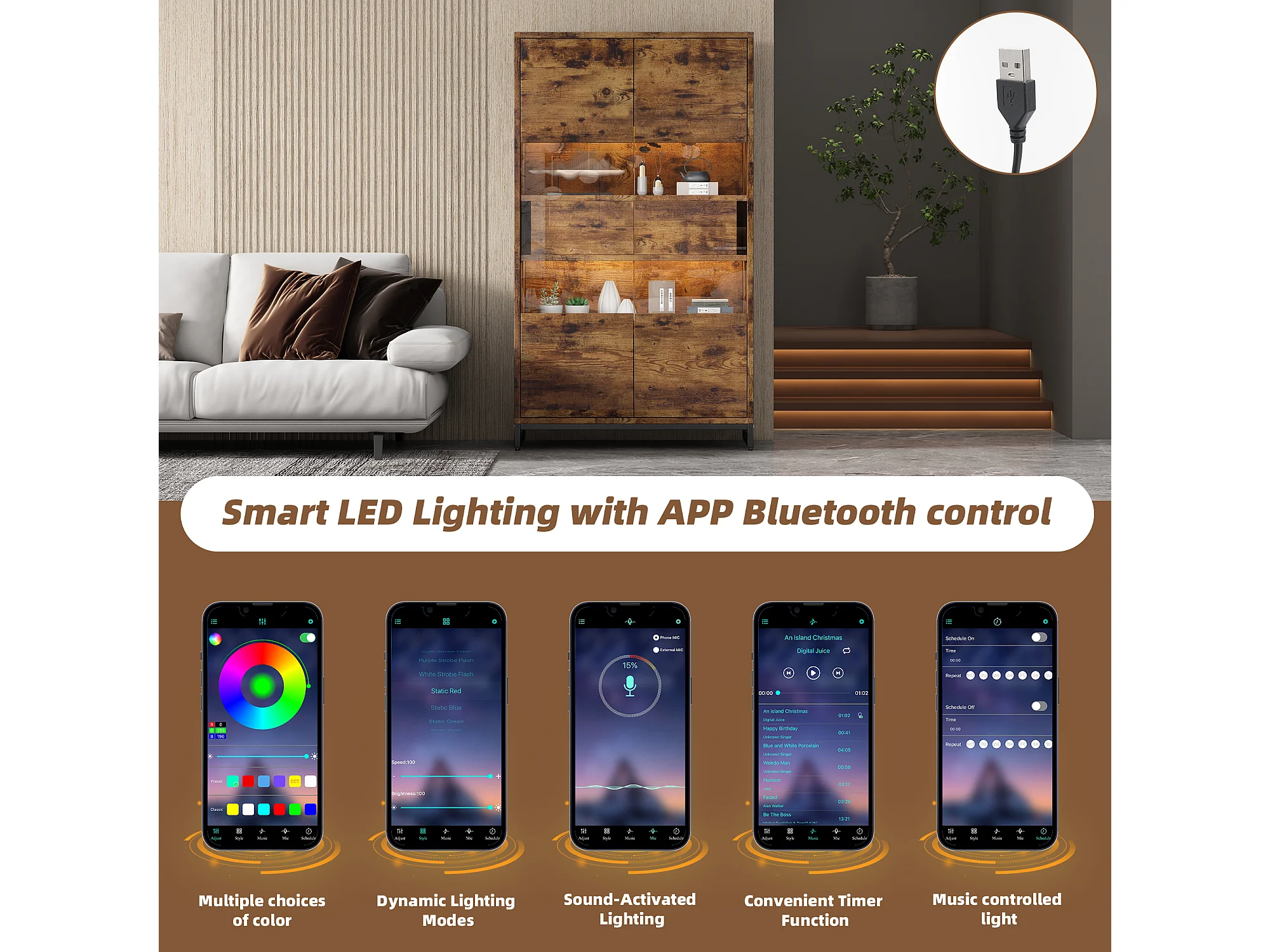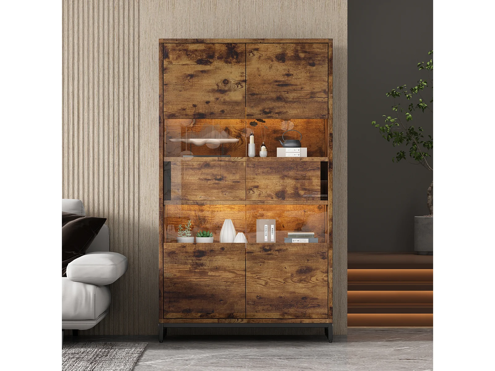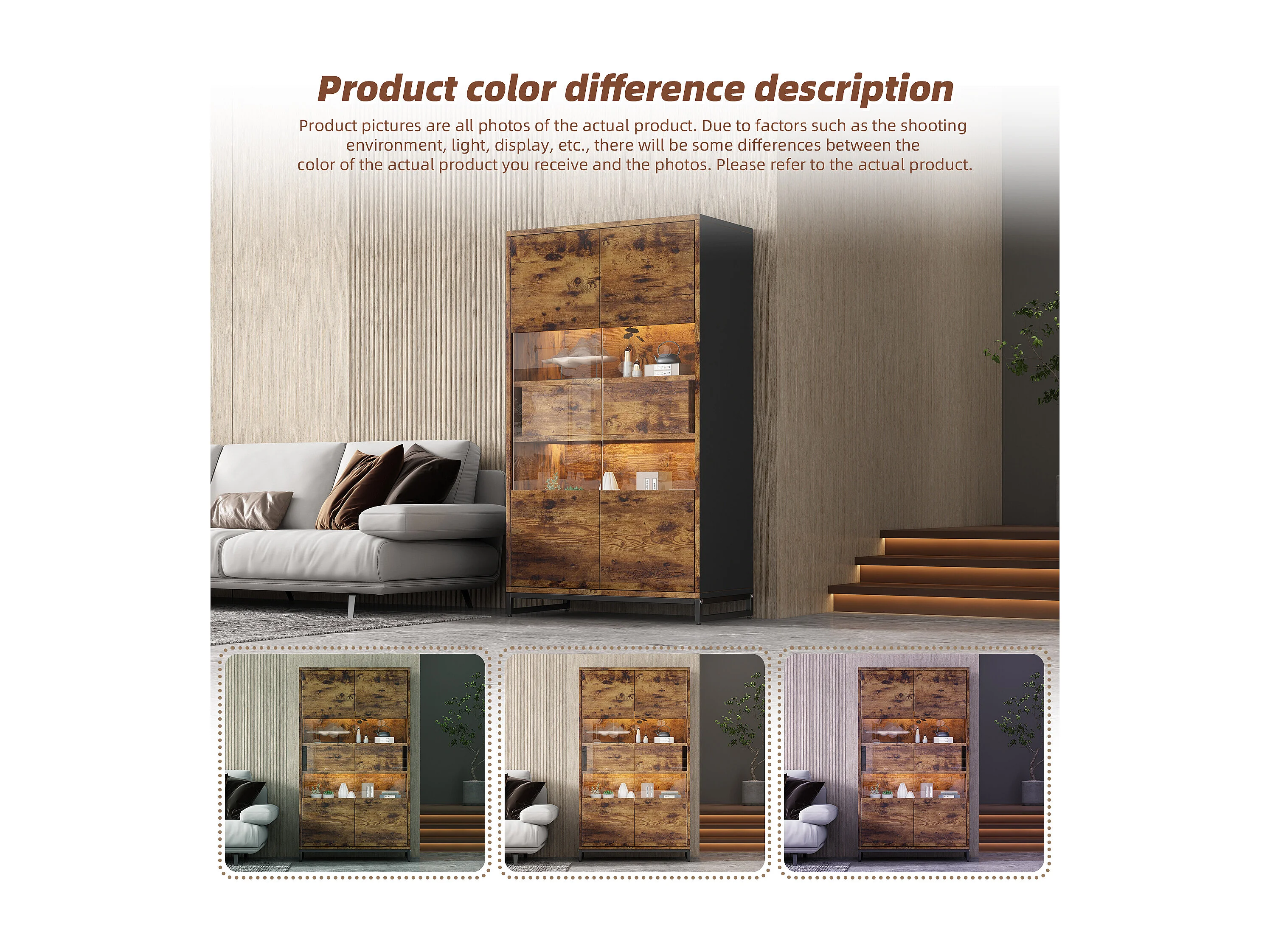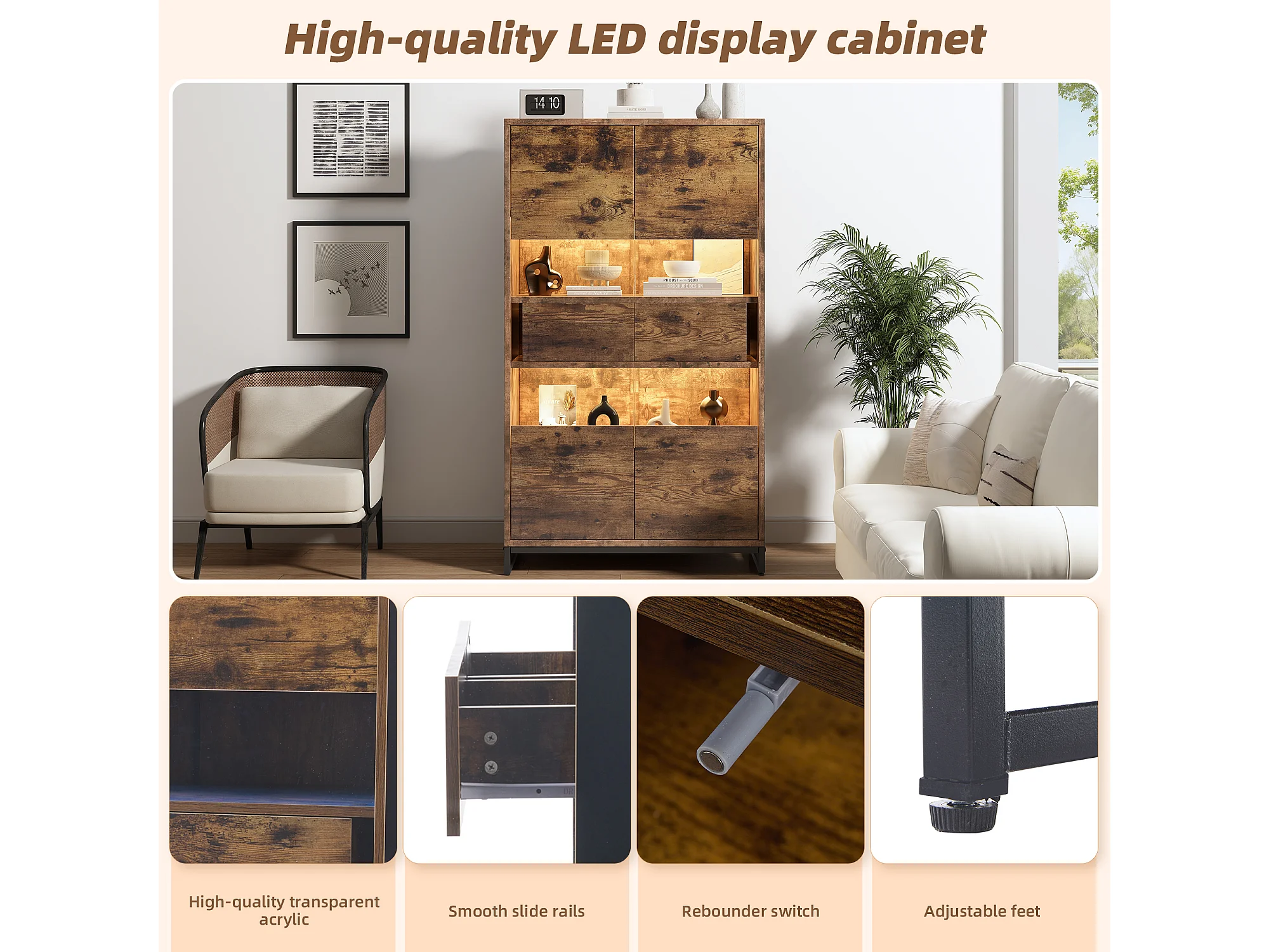 Vitrina con iluminación LED, vitrina independiente, armario de 2 cajones, con panel acrílico, 80x40x138 cm, marrón