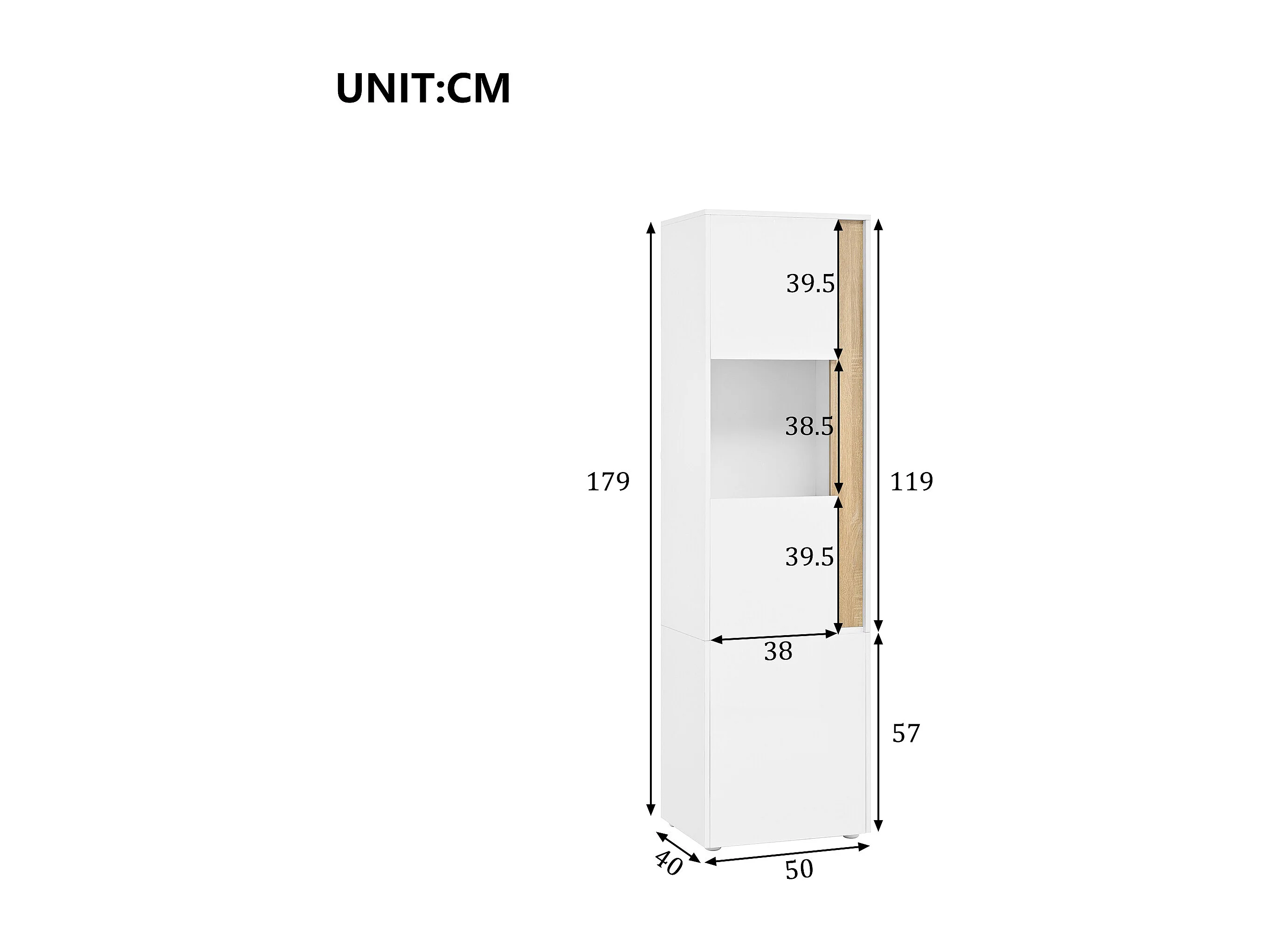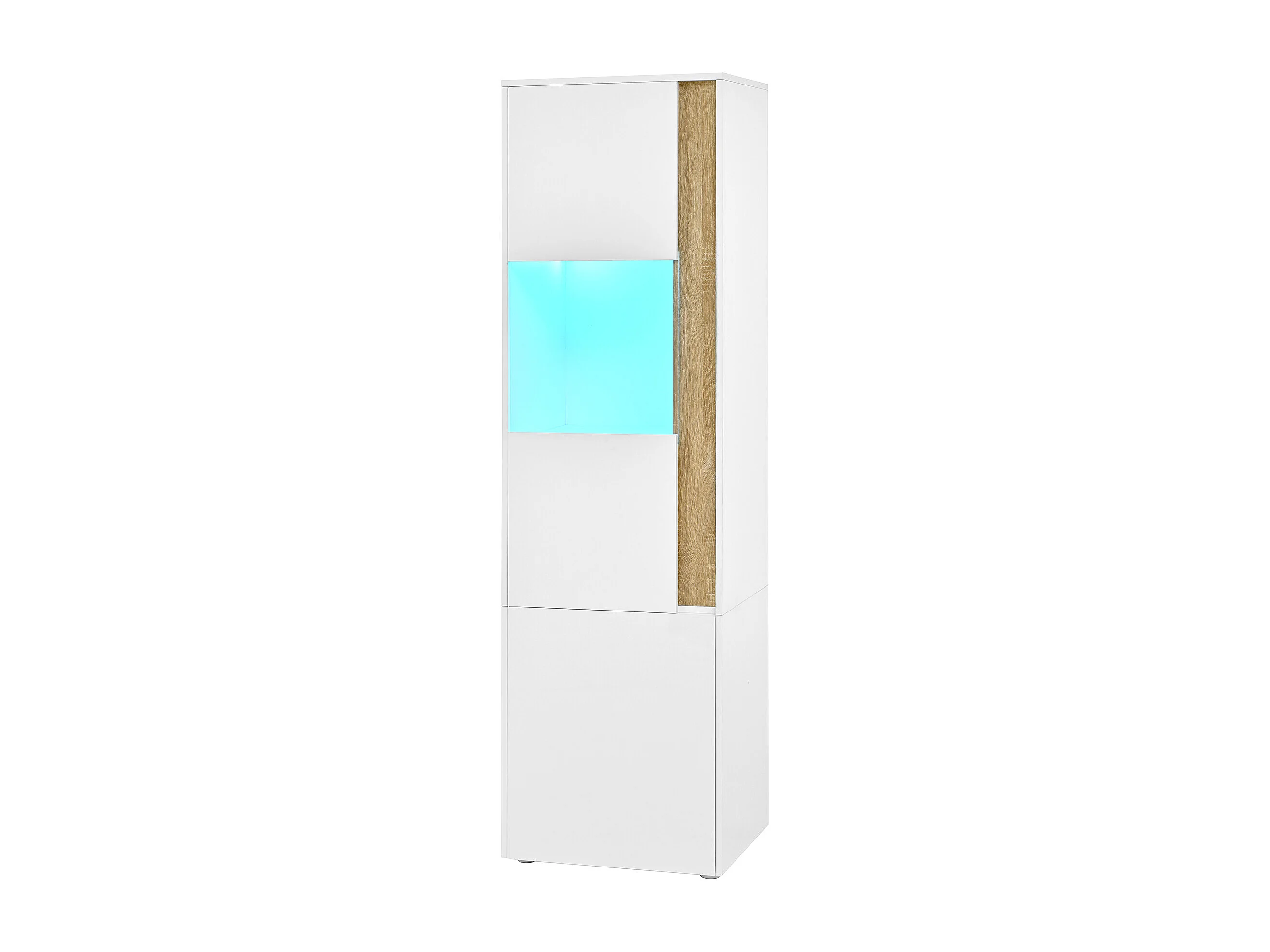 Vitrina con iluminación LED y 2 puertas - Para salón, despacho y cocina - Blanco y natural 50 x 40 x 179 cm
