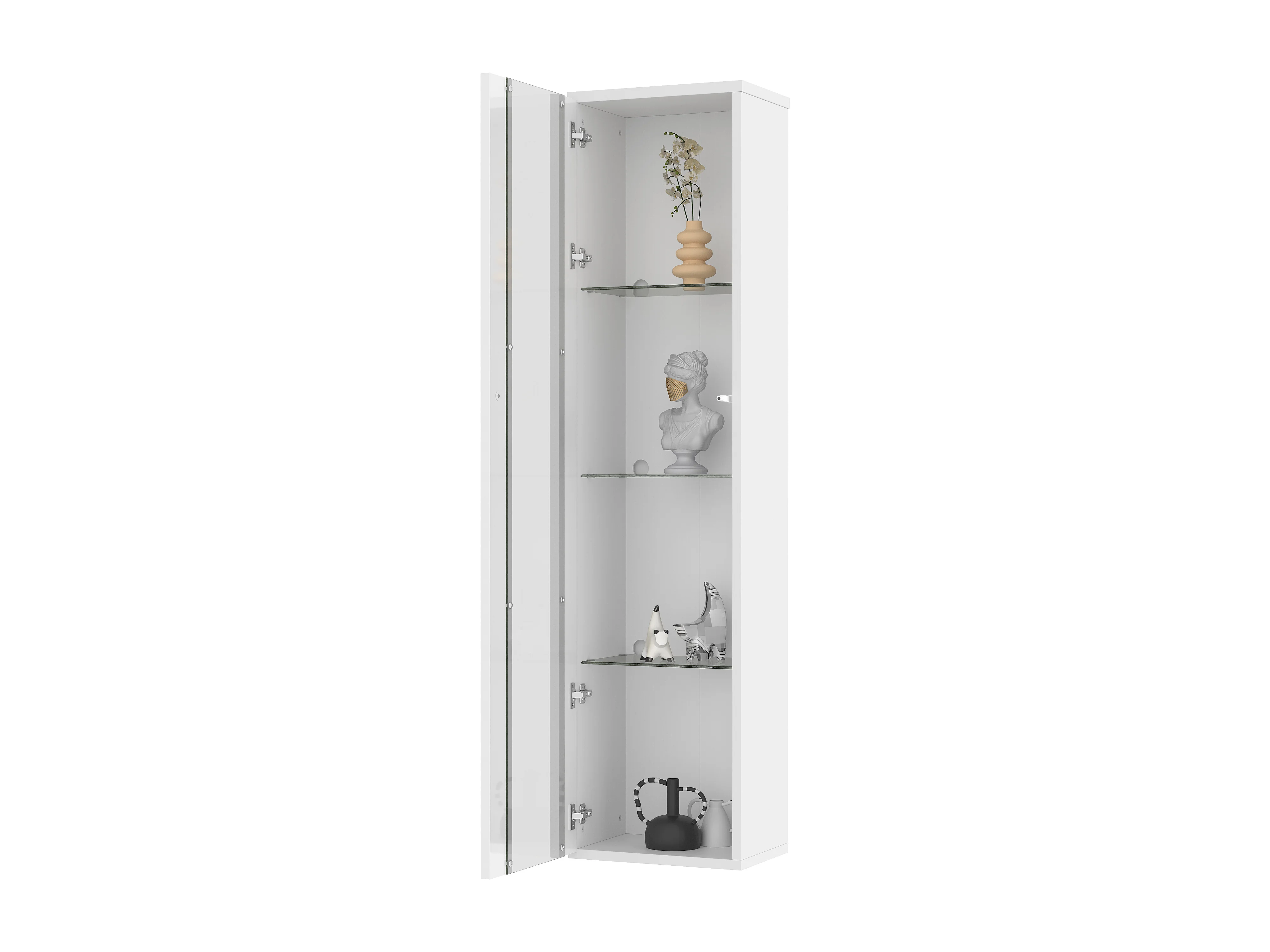 Vitrina con puertas de cristal e iluminación LED - estantes de cristal - Blanca 40 x 29 x 170 cm