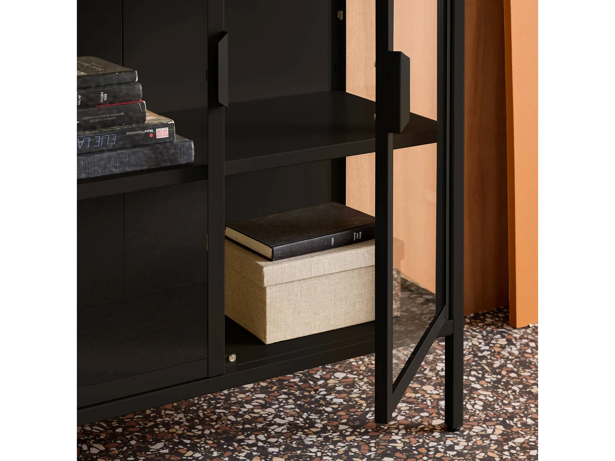 Vitrina de acero y vidrio templado de 2 puertas, 102cm negro