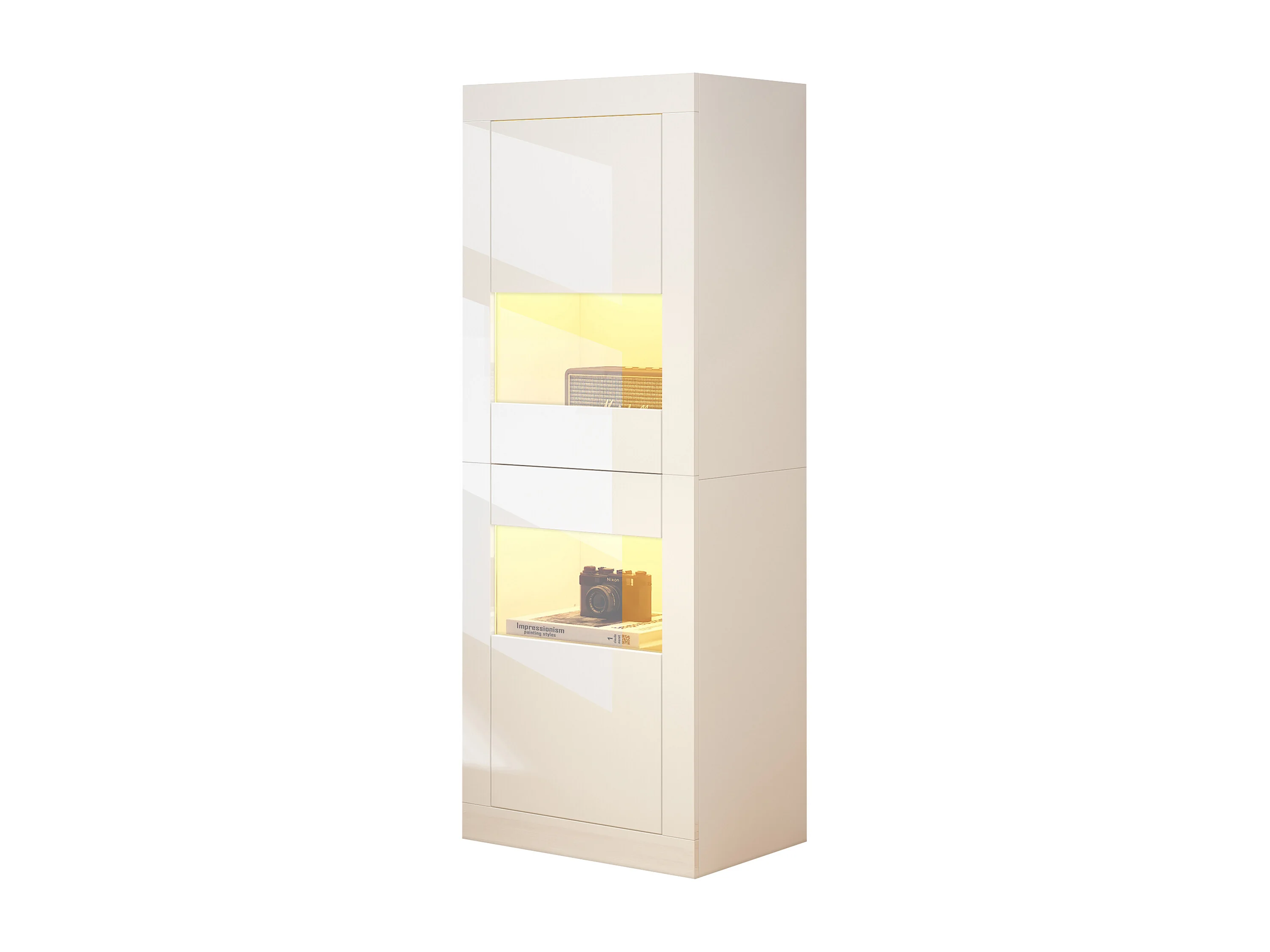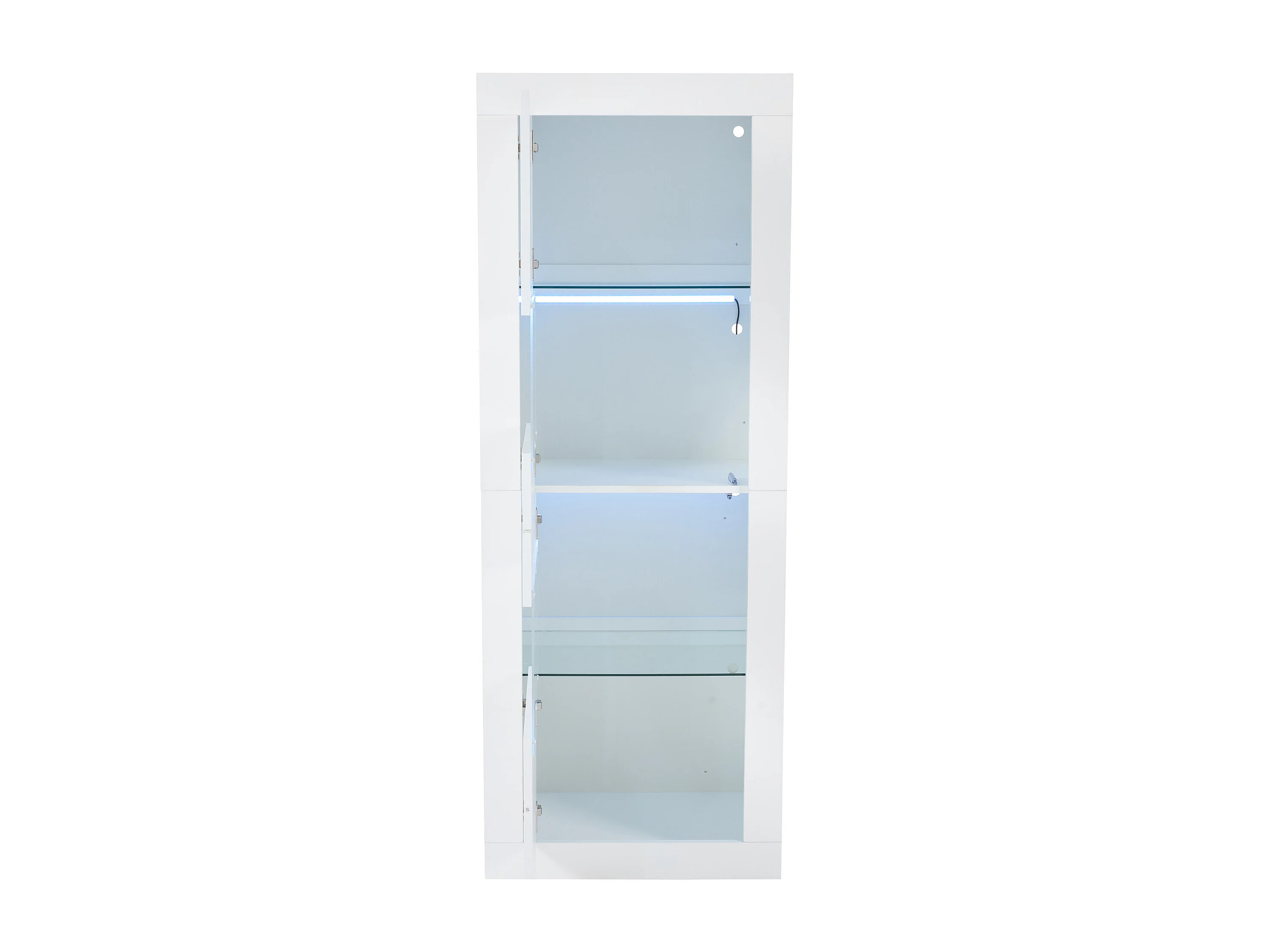 Vitrina de alto brillo con LED, 1 estante de cristal, tablero de partículas, blanco (61x42x162 cm)