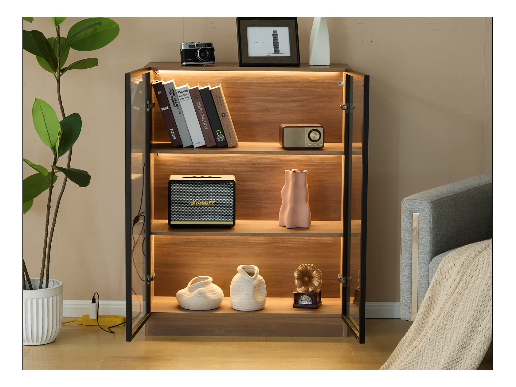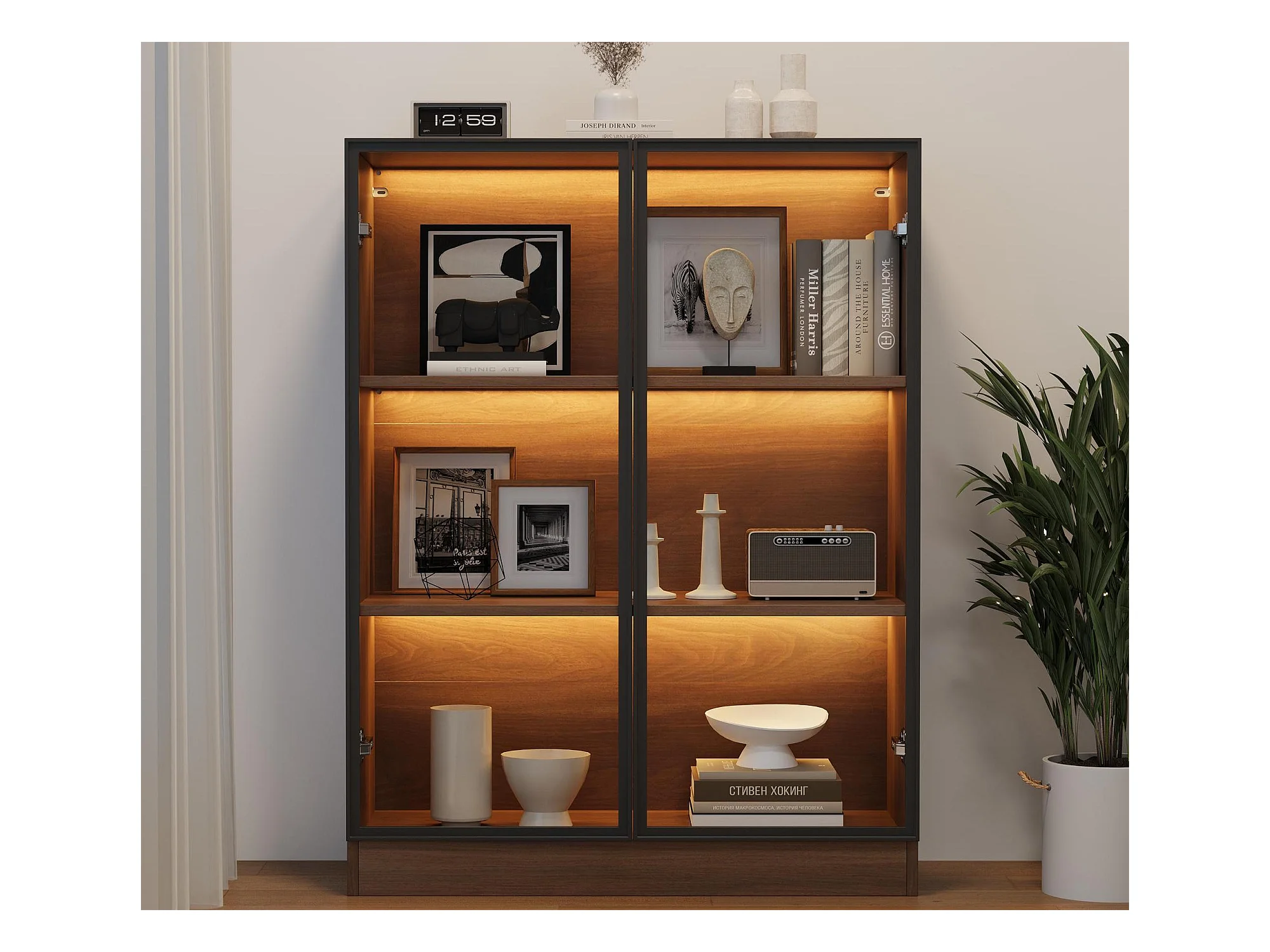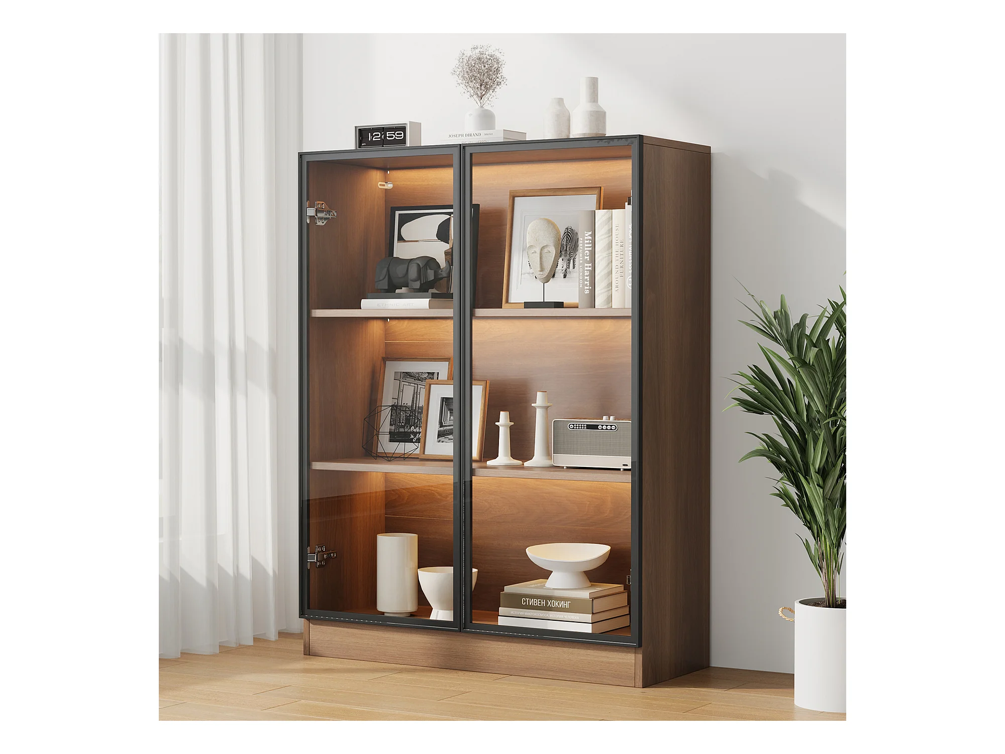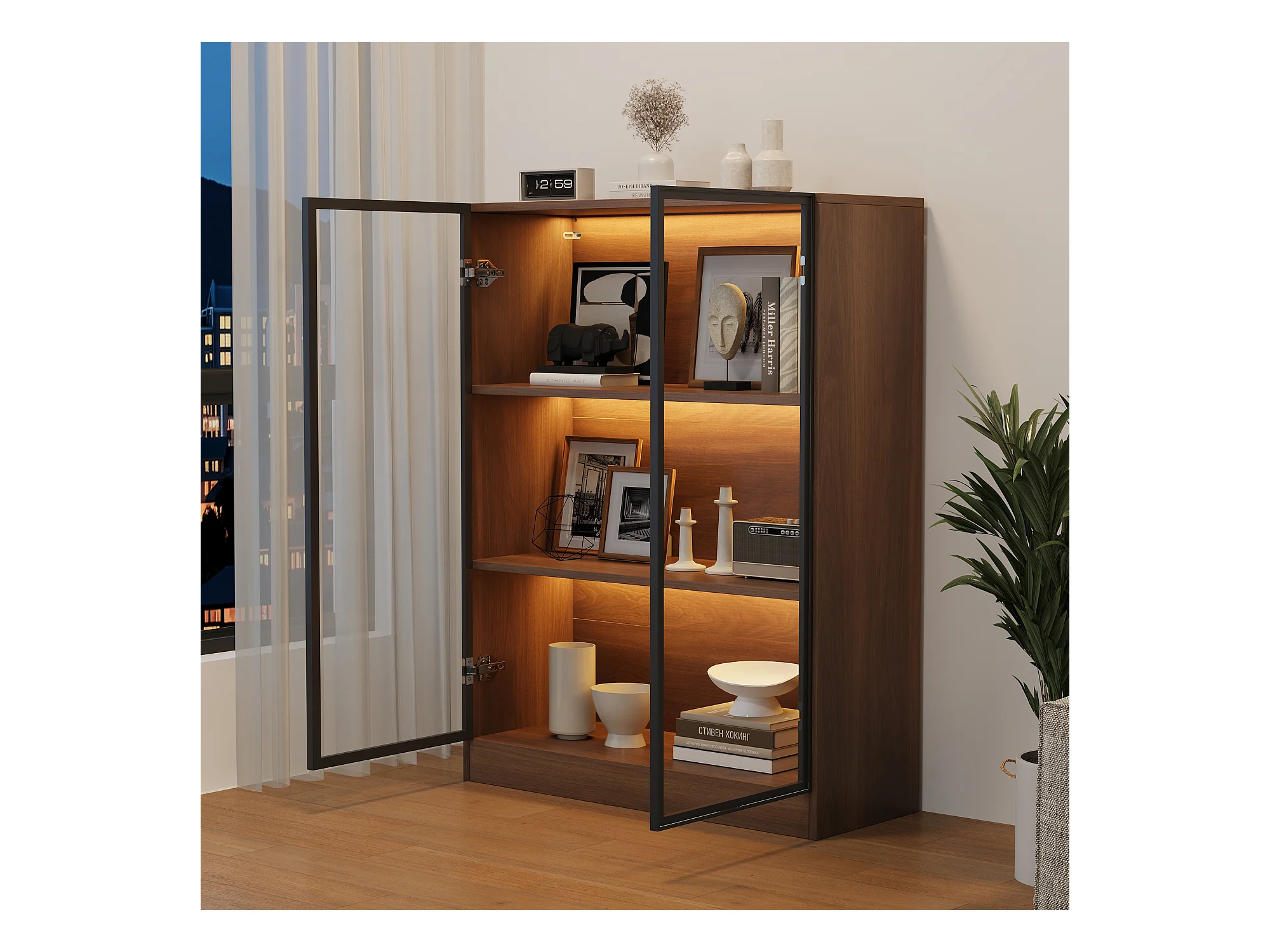 Vitrina de cristal con 3 estantes - LED - Marrón