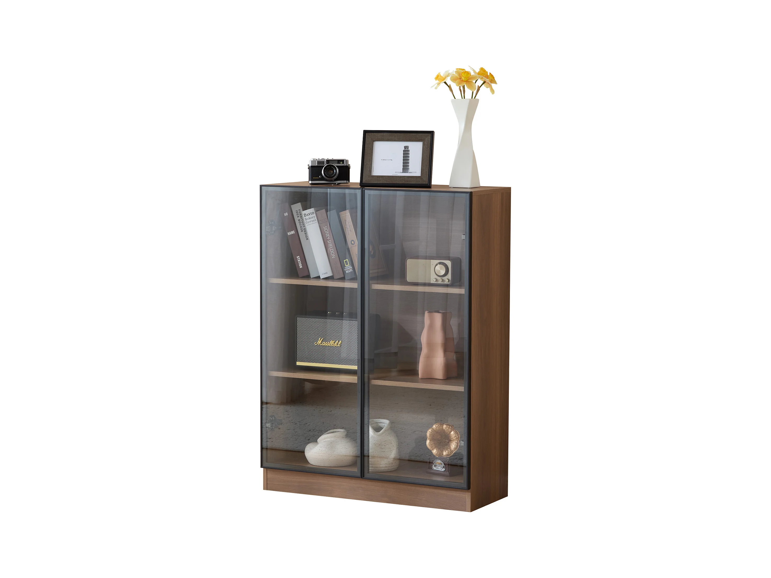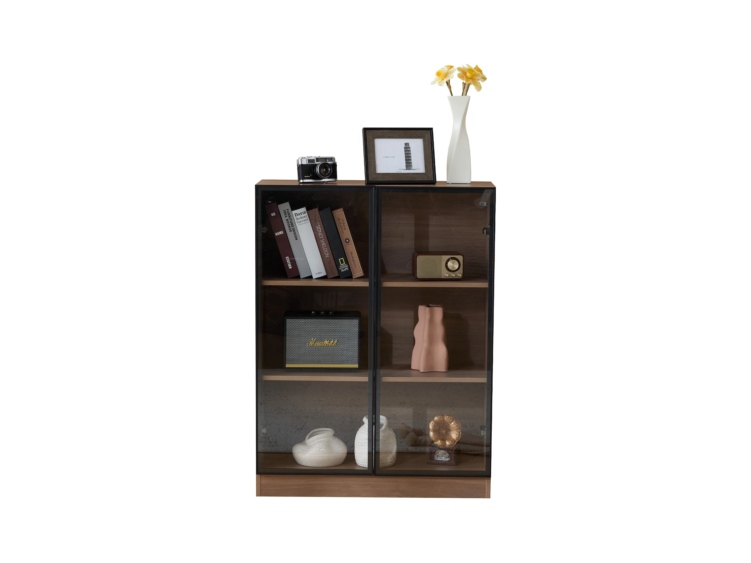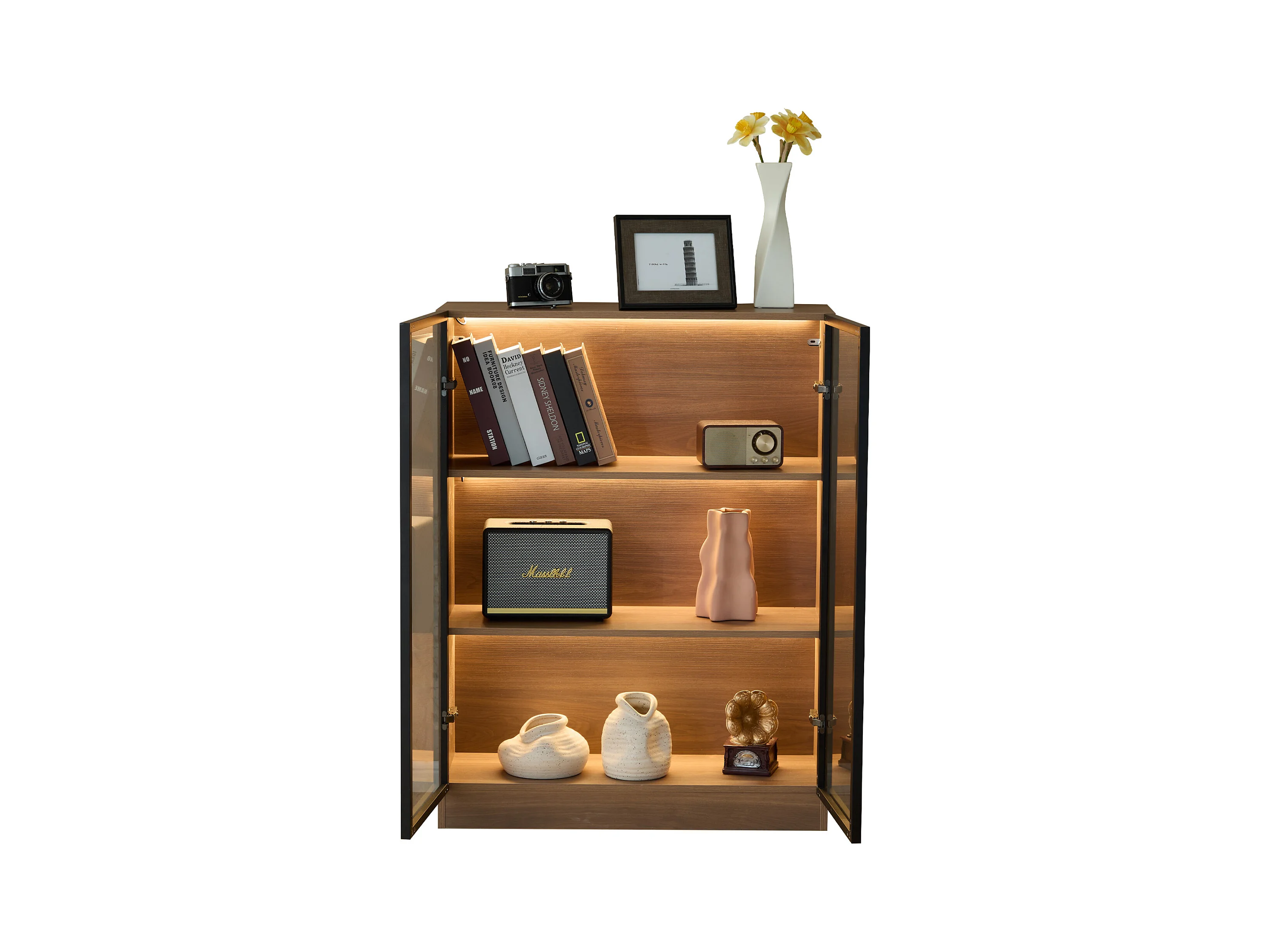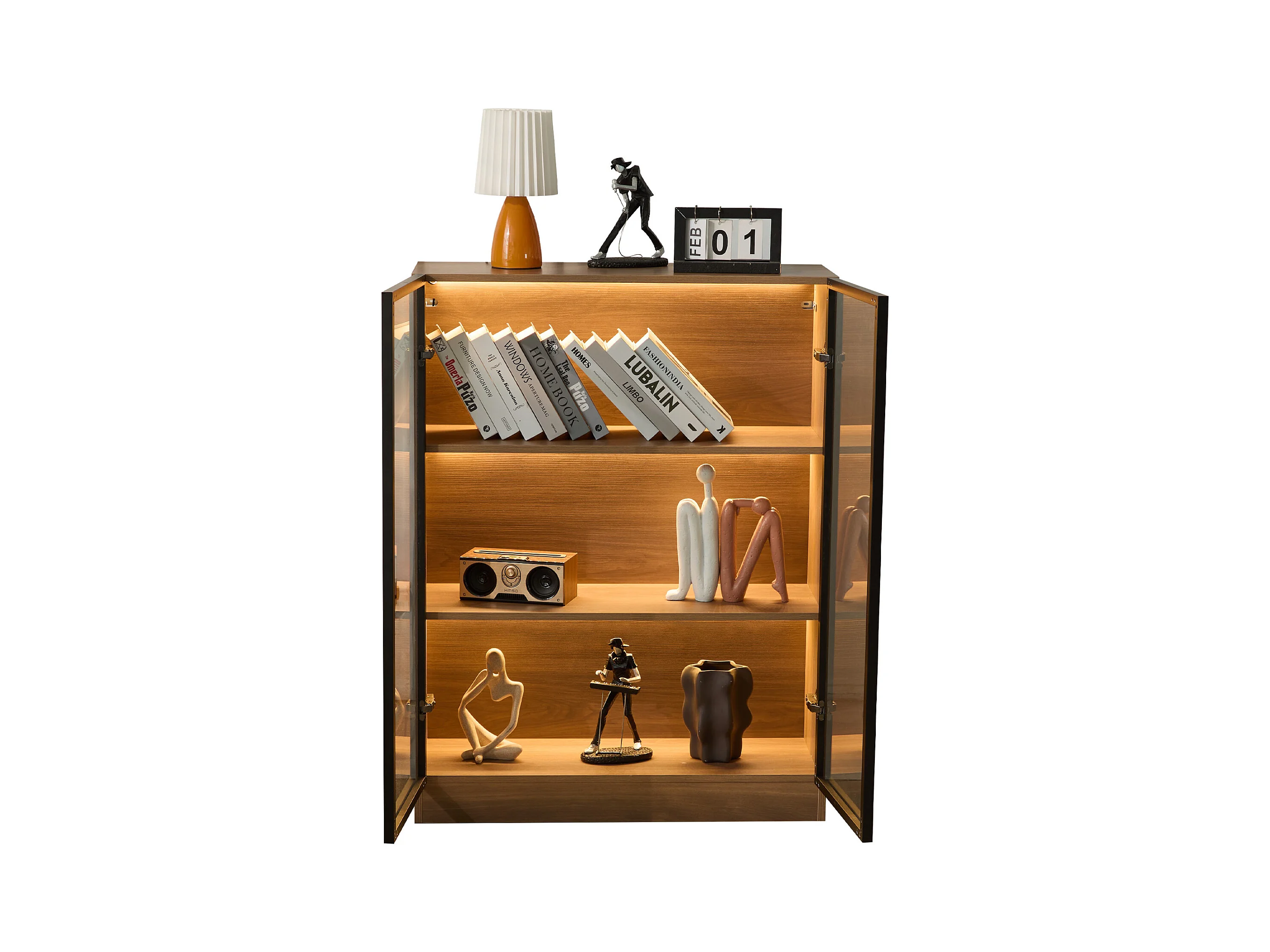Vitrina de cristal con 3 estantes - LED - Marrón