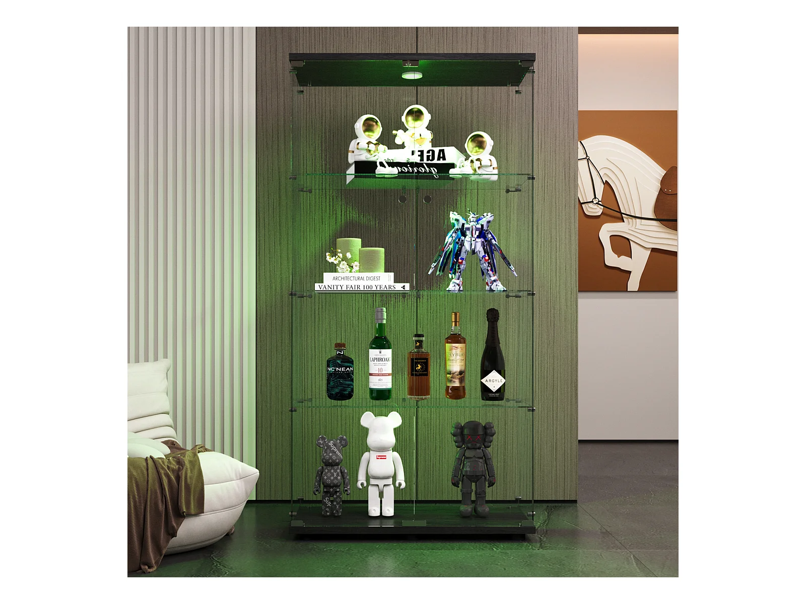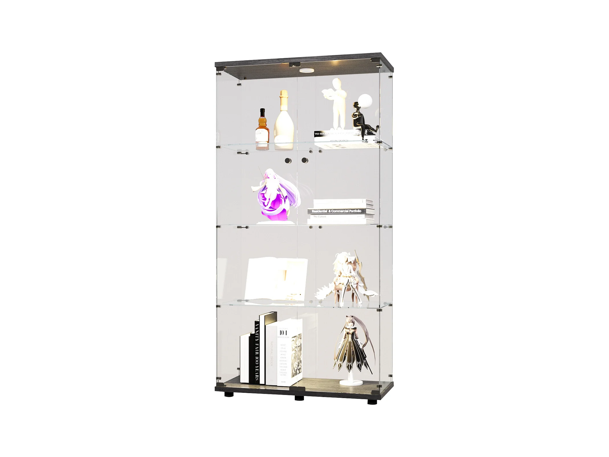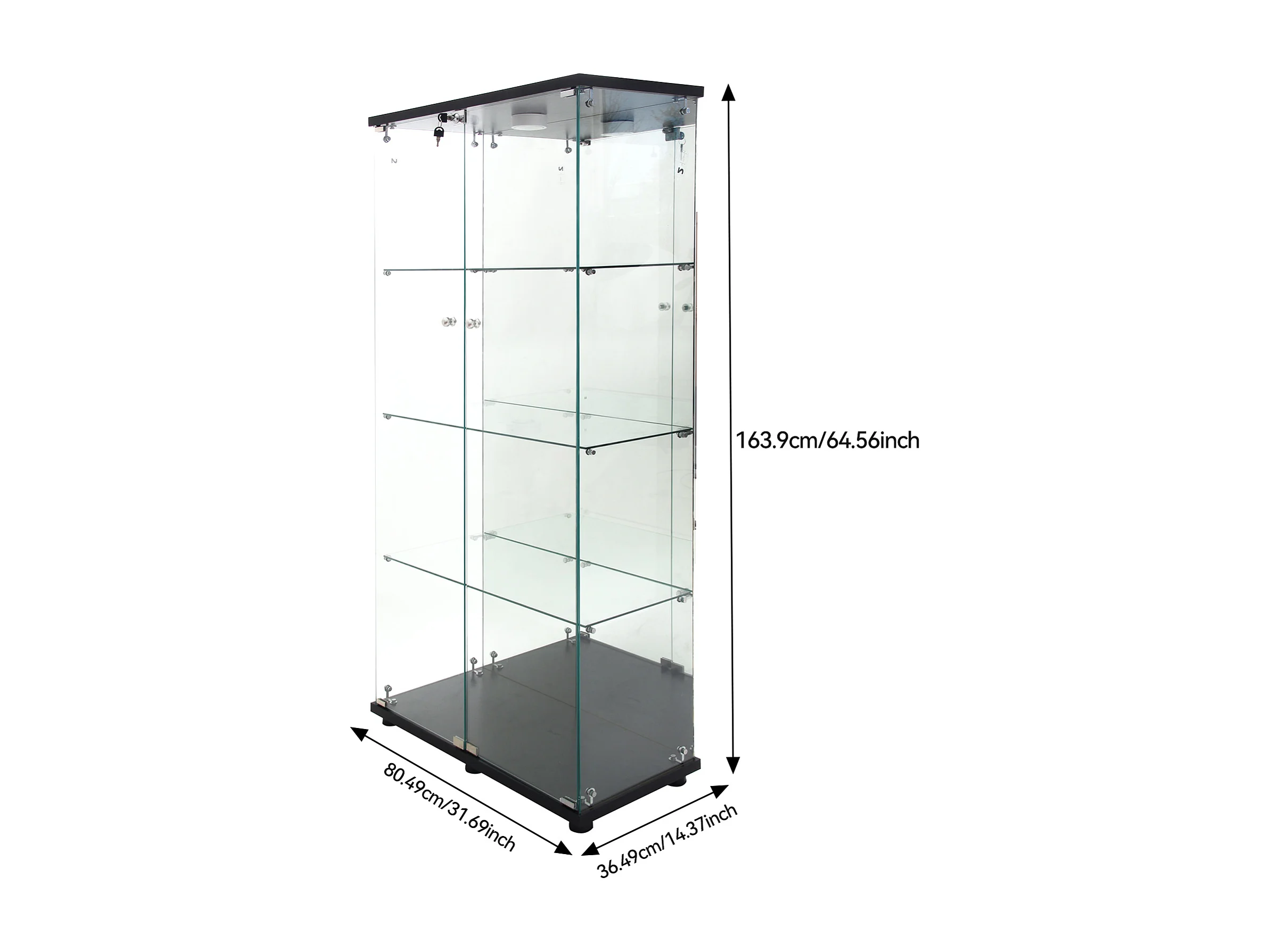 Vitrina de cristal con 4 estantes, 80,49 x 36,49 x 163,9 cm, con 2 puertas, con luz LED, color negro