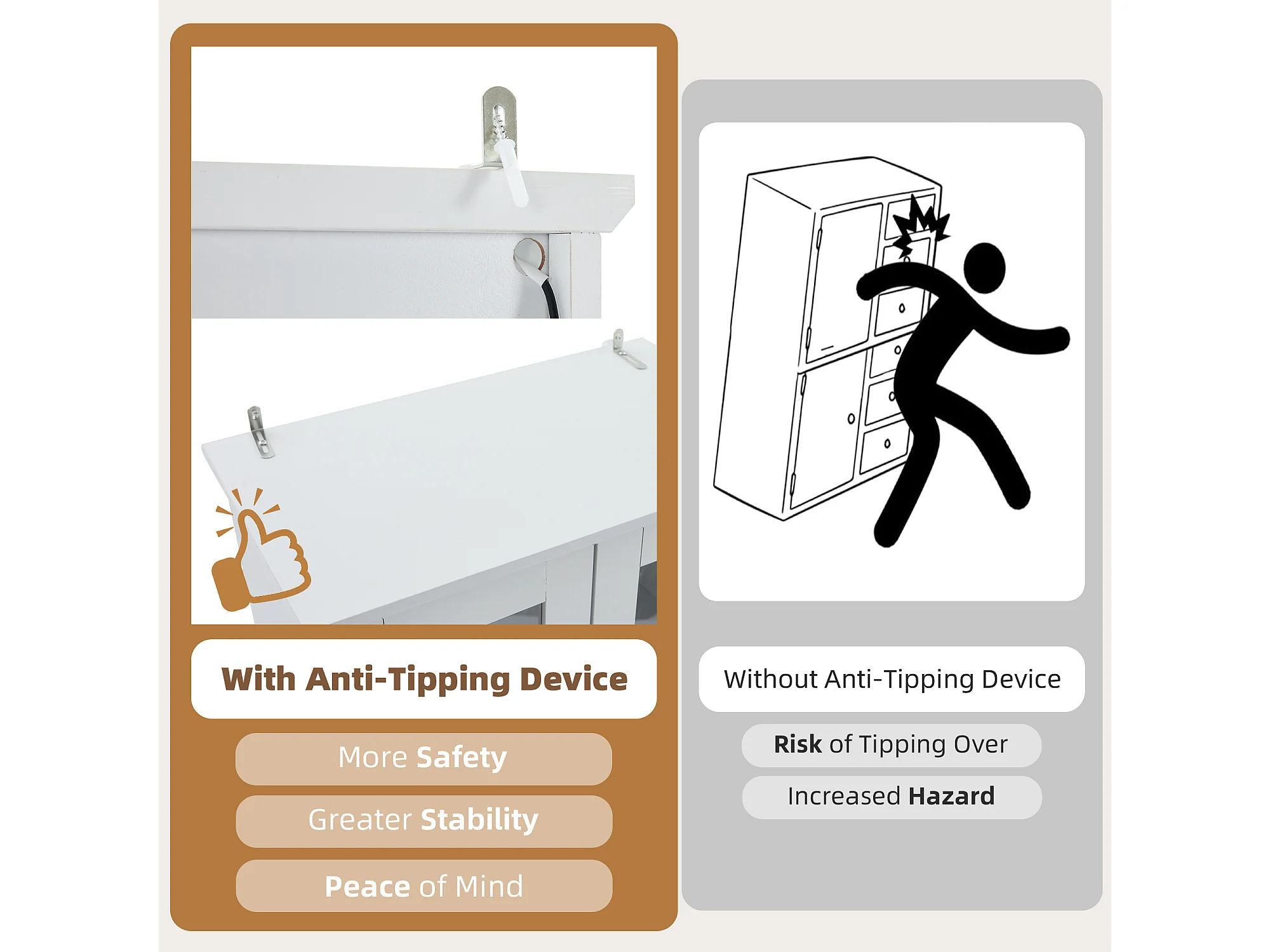 Vitrina de cristal con LED, 2 puertas y 2 cajones, 60 x 35,5 x 165 cm, color blanco