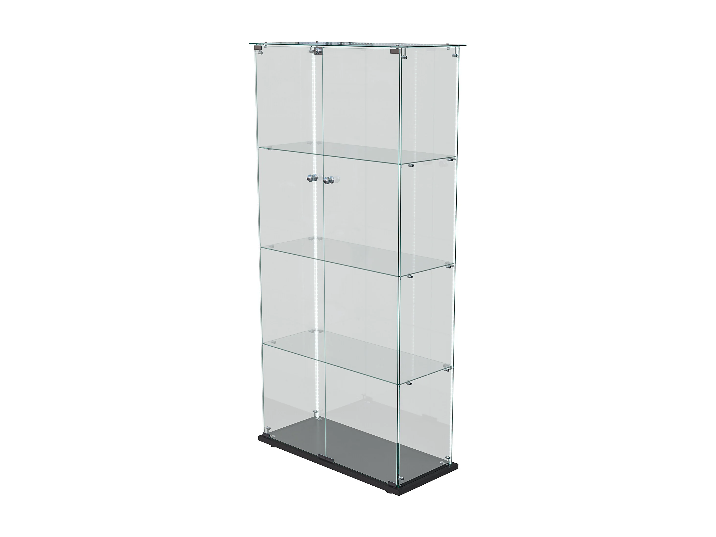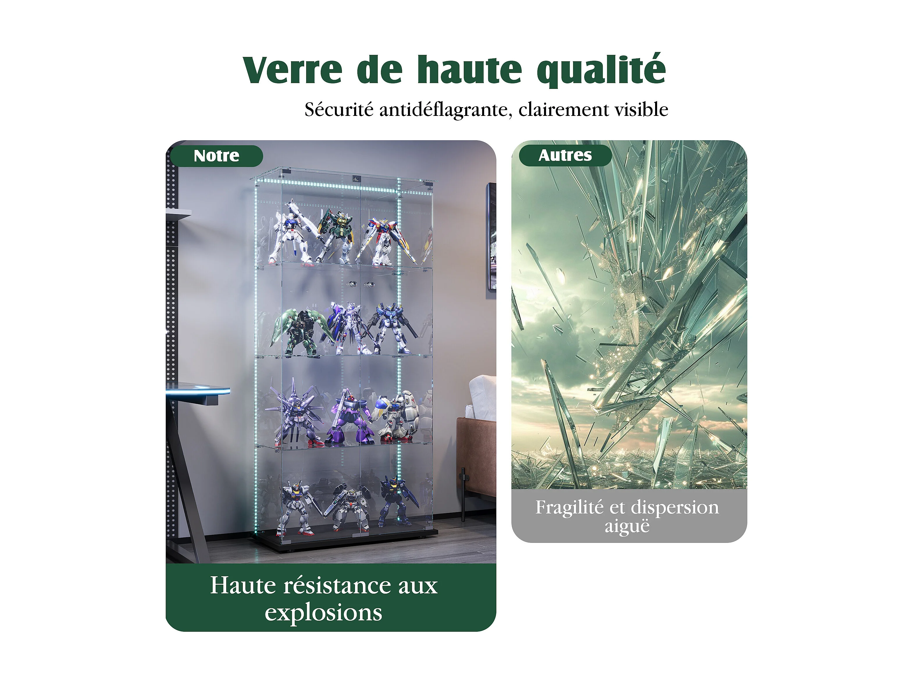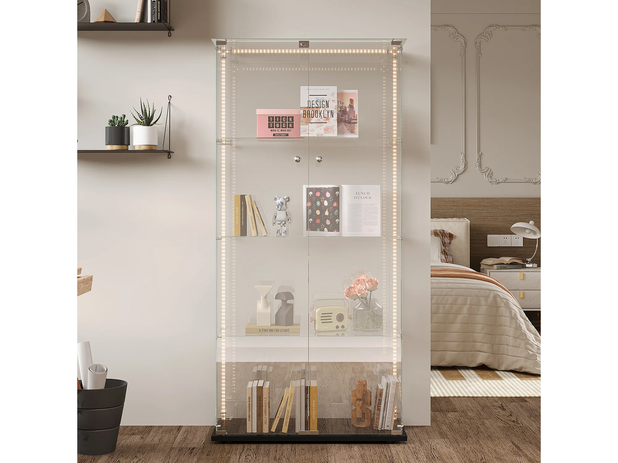 Vitrina de cristal con tiras LED, vitrina, 2 puertas con cerradura, 4 estantes, 163 x 78,5 x 35 cm, color negro