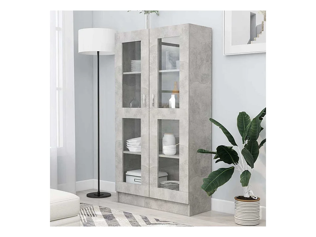 Vitrina de madera contrachapada gris hormigón 82,5x30,5x150cm