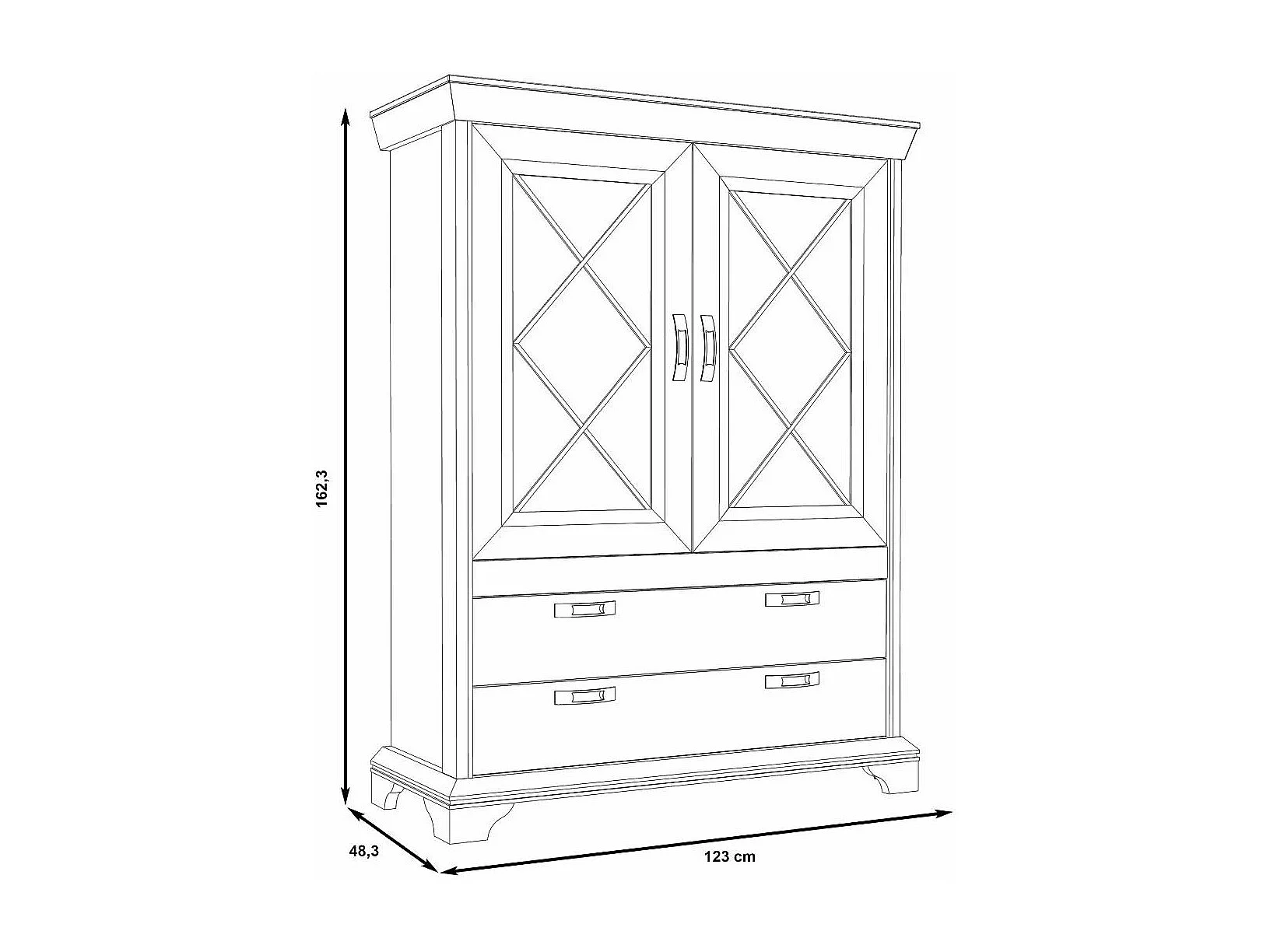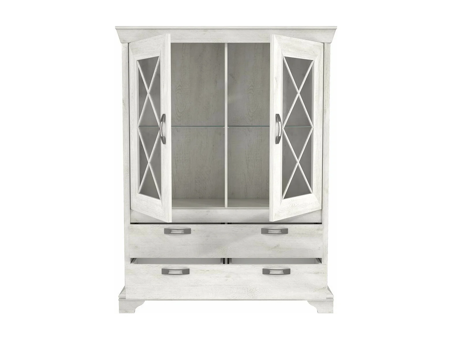 Vitrina doble de 123x162x48 cm con 2 puertas acristaladas y 2 cajones en blanco Karen