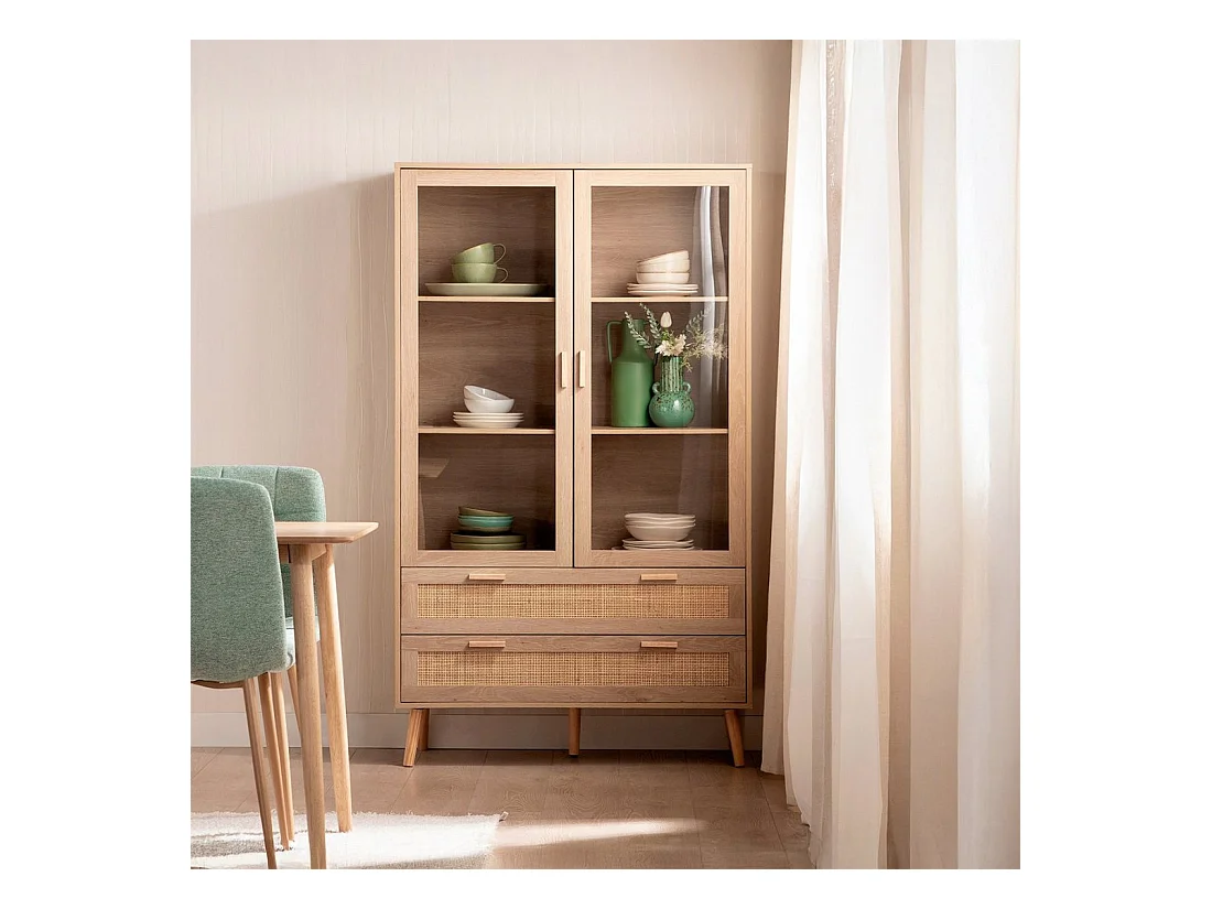 Vitrina Mindy madera maciza 2 puertas 4 cajones Orka 100 cm