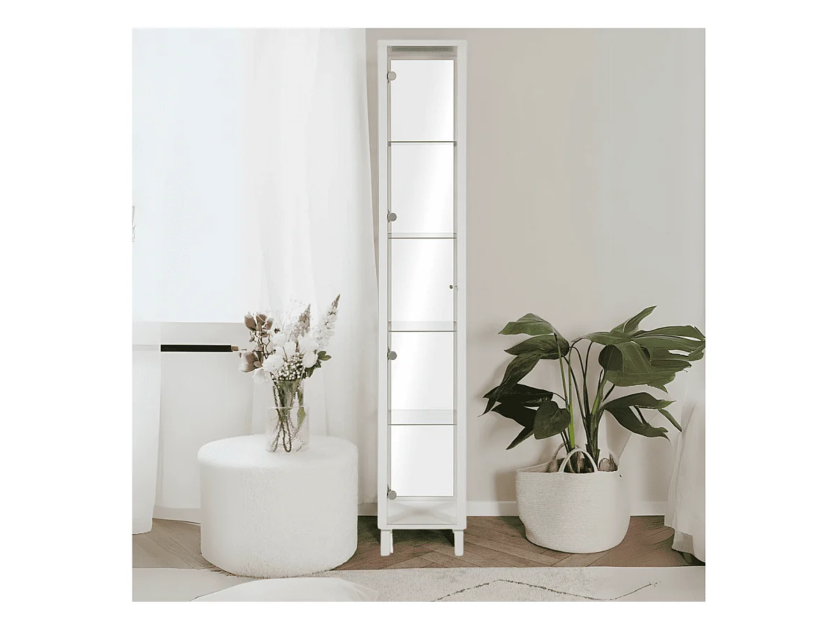 Vitrina Dvecch, Aparador de exposición, Vitrina multiusos, Aparador de salón, 78x33 h199 cm, Blanco