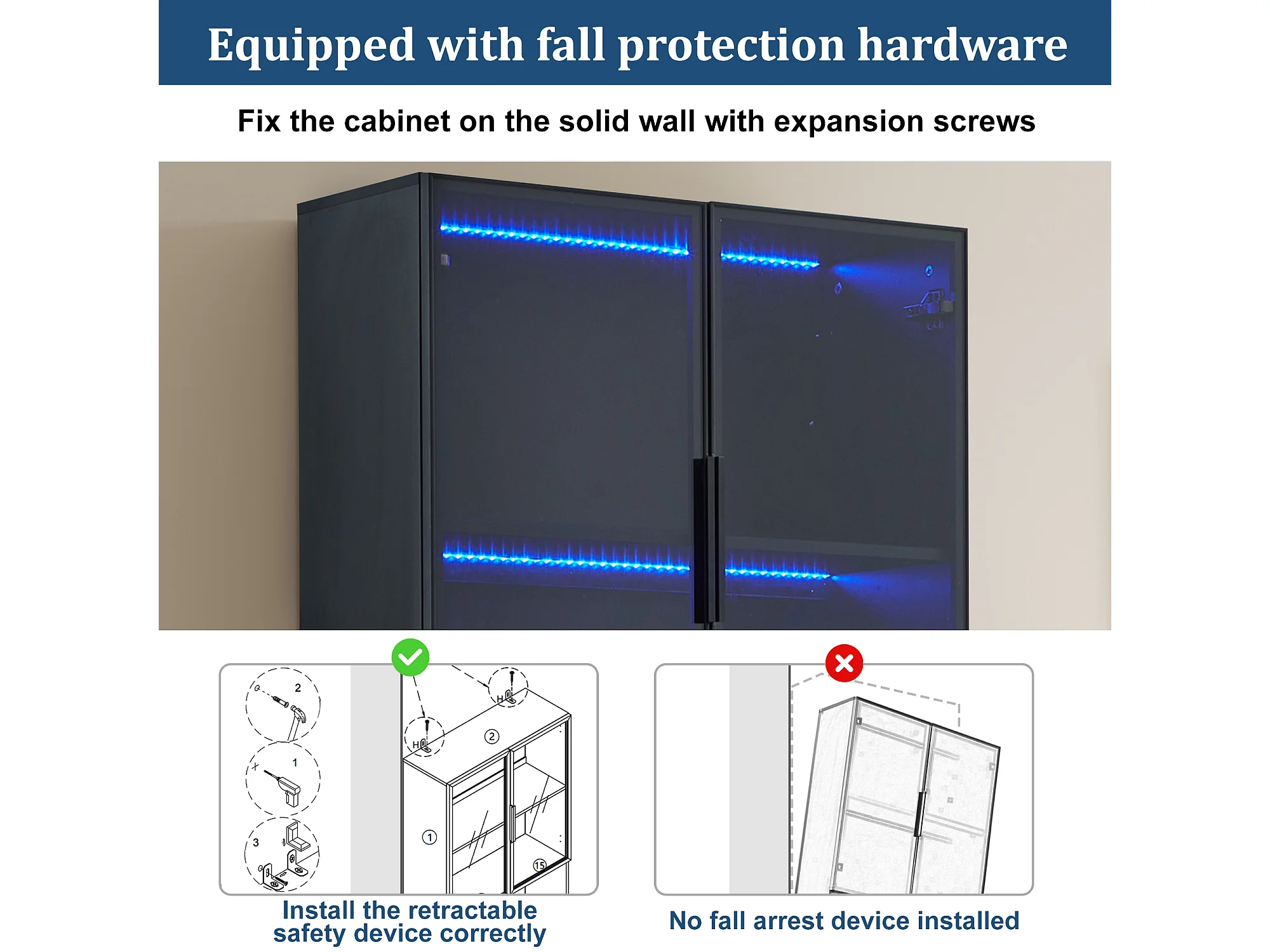Vitrina moderna blanca con 16 colores LED y Bluetooth – 60×35×180 cm, con cristal y cajón