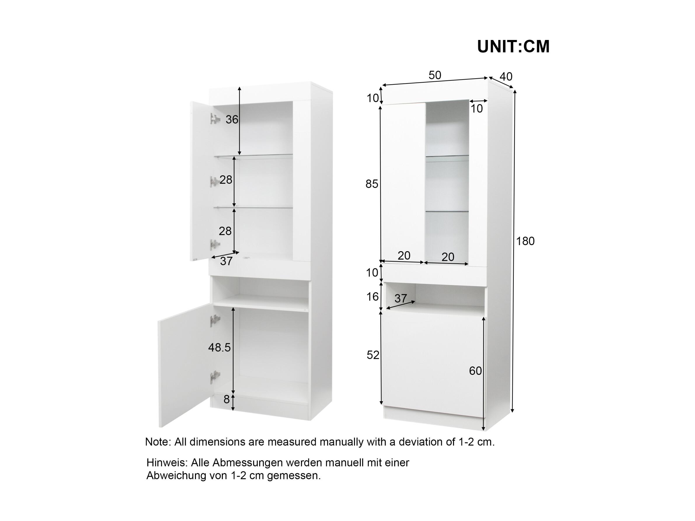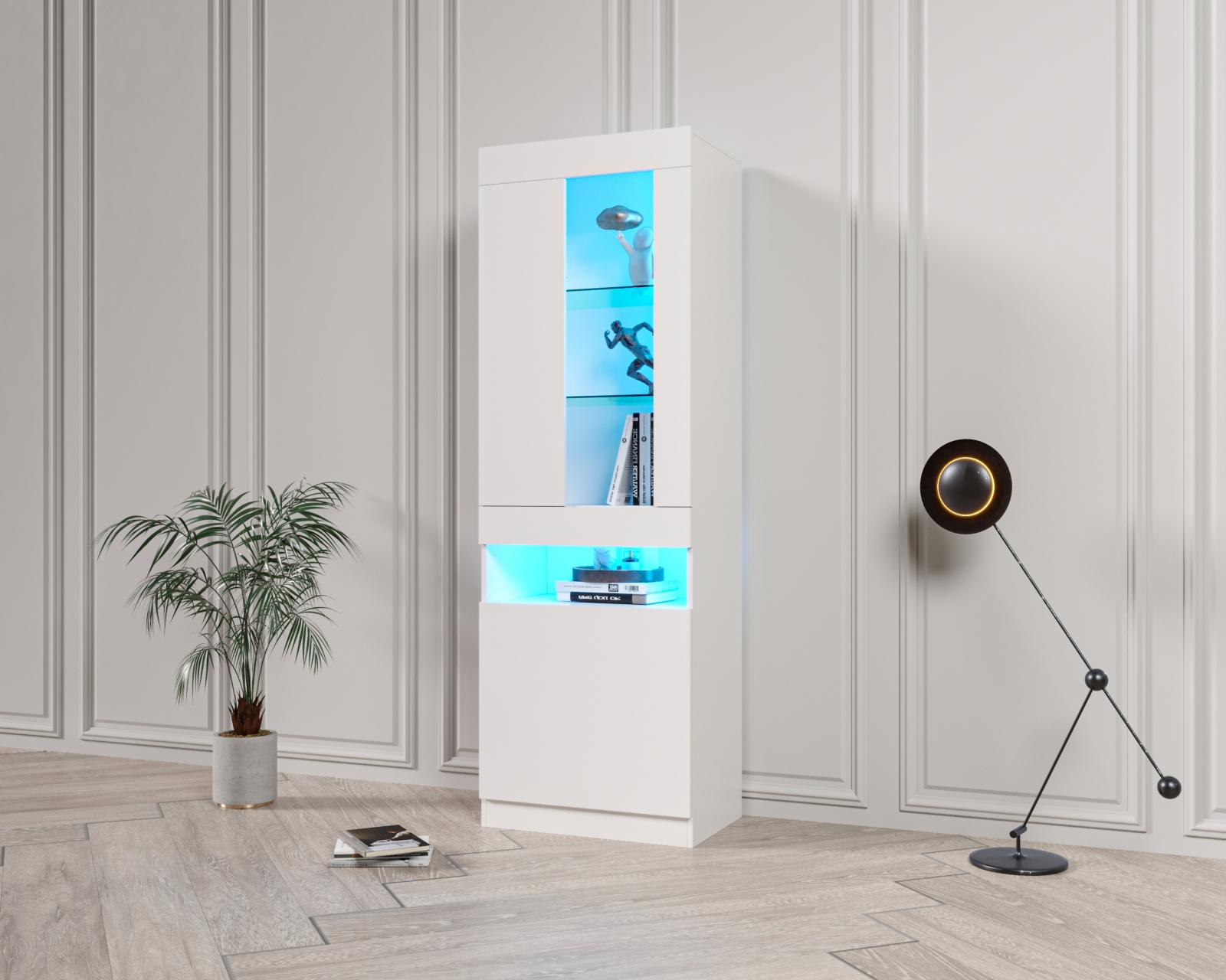Vitrina LED con 16 colores, diseño moderno, aglomerado, blanco (50x40x180 cm)