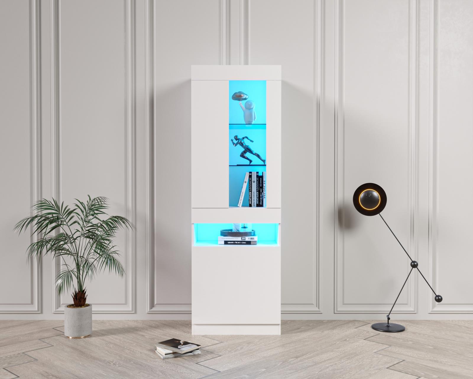 Vitrina LED RGB de 16 colores, mueble de almacenamiento blanco, aparador con iluminación ambiental