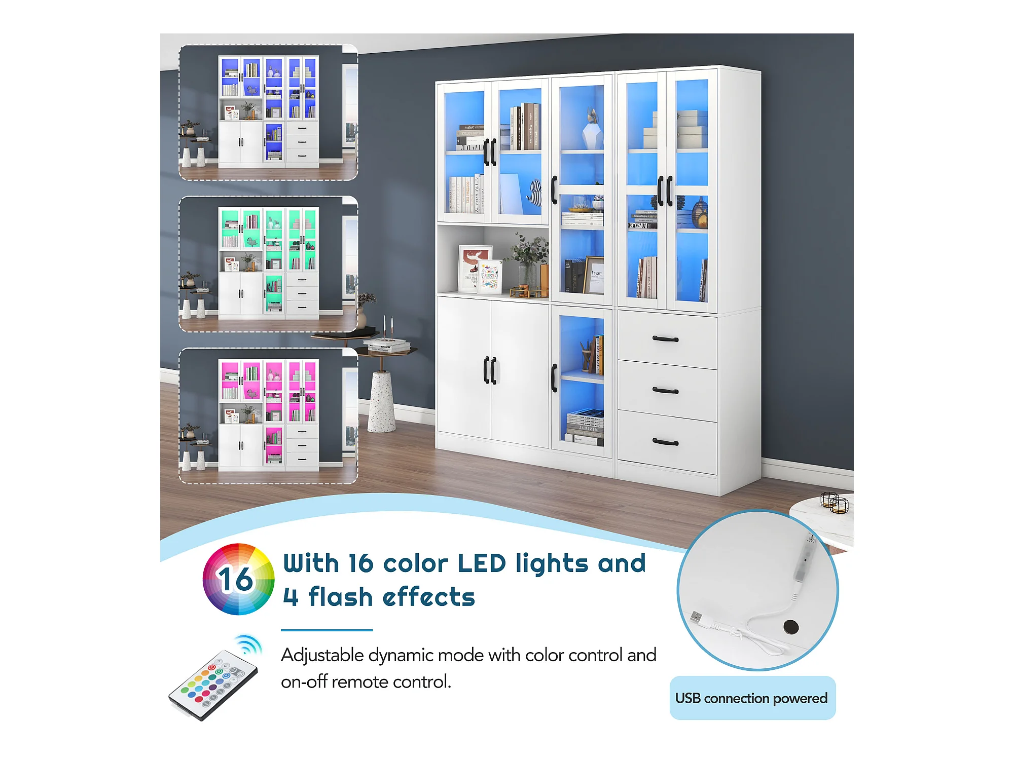 Vitrina LED RGB de 16 colores, mueble de almacenamiento blanco, aparador con iluminación ambiental