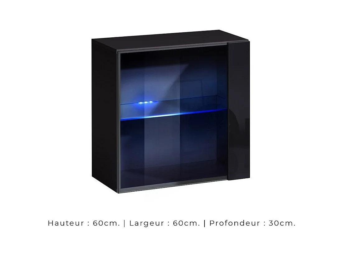 Vitrina colgante negra con 1 puerta de vidrio y iluminación LED incluida. Colección SWITCH.