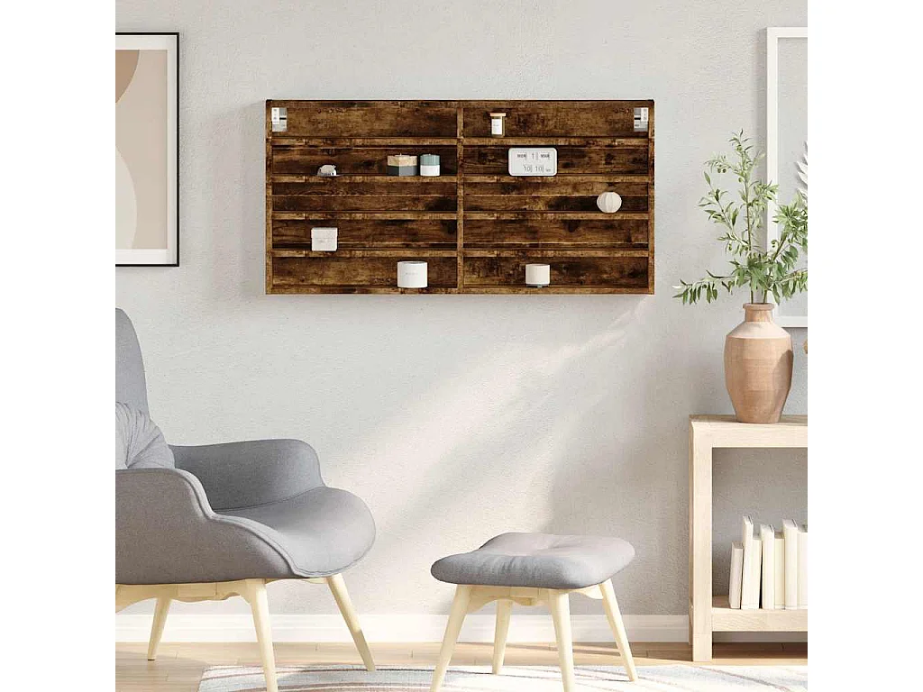 Vitrina roble ahumado 100x8,5x50 cm madera de ingeniería