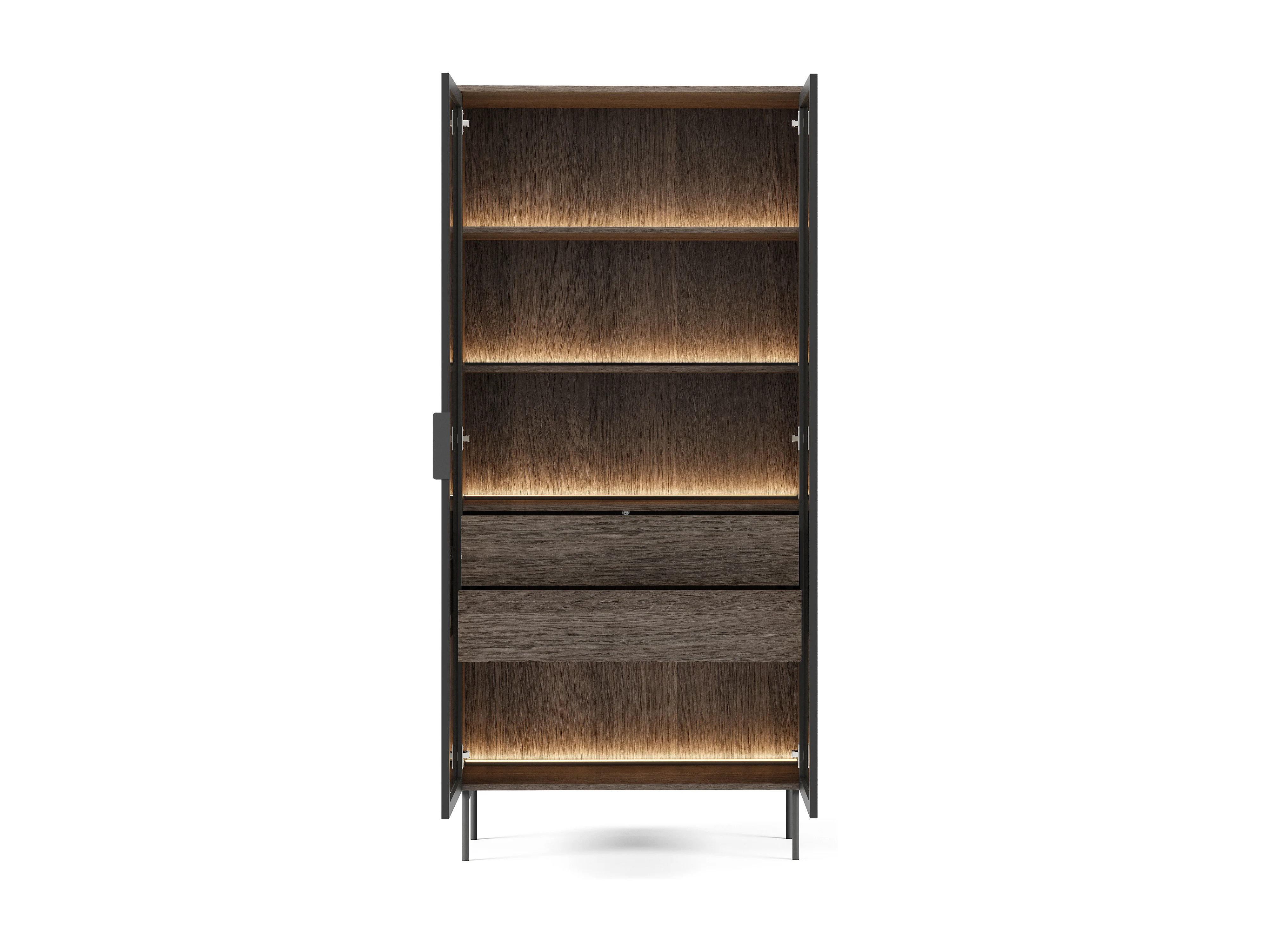Vitrina: 2 Puertas, Roble Evocado, Patas Negras, Iluminación LED, 134,1 X 113,2 X 38 Cm