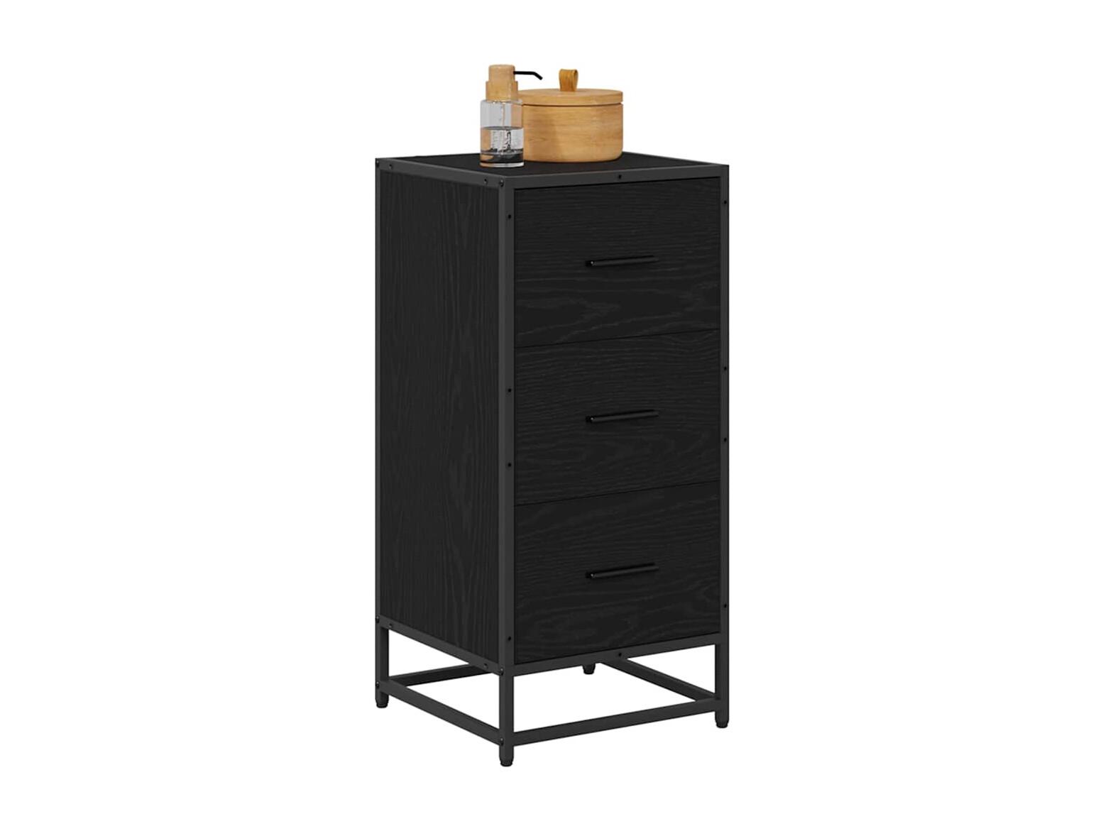 Aparador de madera de ingeniería y metal negro 35,5x35x76 cm