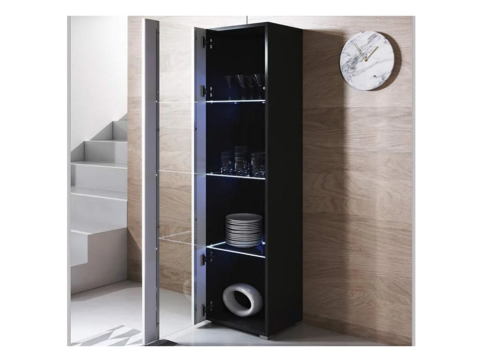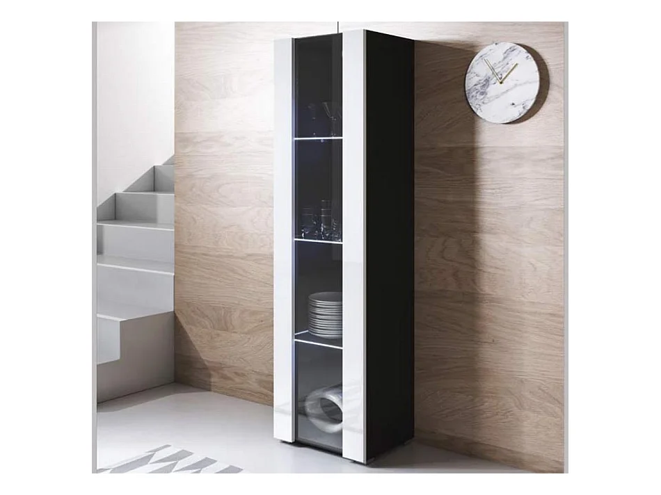 Vitrina para Salón comedor en Negro y Blanco con LED 40x29x128cm Luke V3