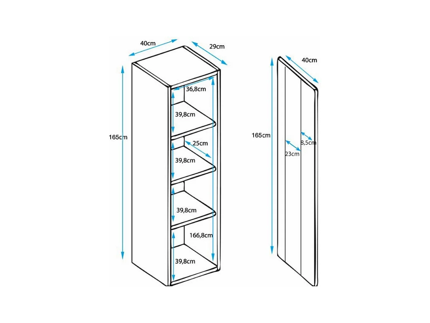Vitrina para Salón comedor en Blanco y Negro 40x29x167cm Luke V4