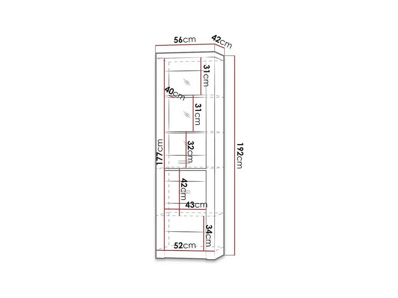 Estantería Serfeno 102, Cerrable|Con puertas, Vidrio|Aglomerado laminado, 192x56x42cm