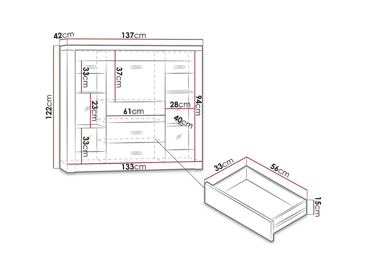 Estantería Tornola 102, Con puertas|Cerrable|Con cajones, Vidrio|Aglomerado laminado,