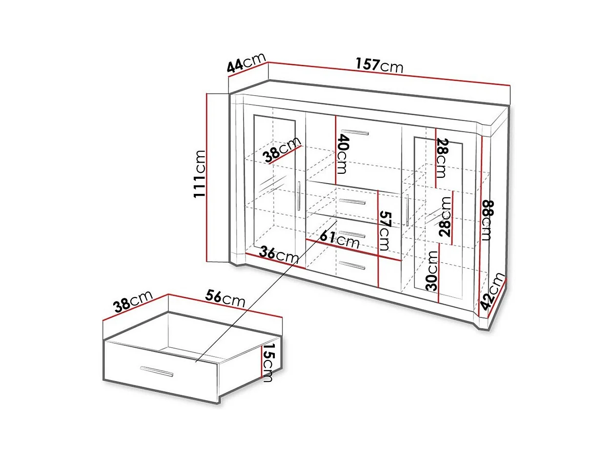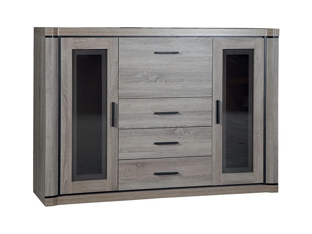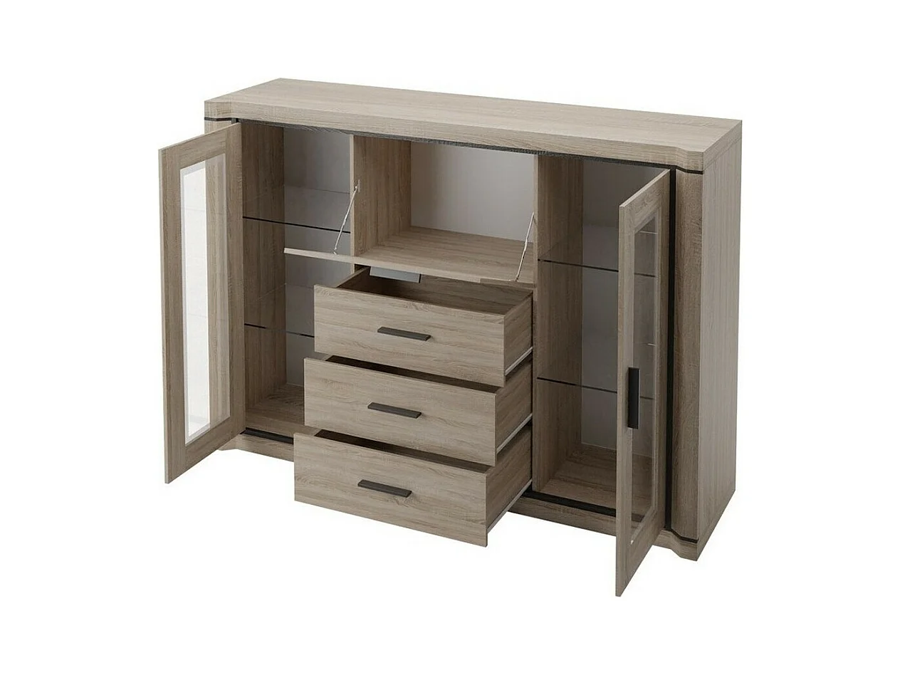 Estantería Ferdore 155, Cerrable|Con cajones|Con puertas, Vidrio|MDF|Aglomerado laminado