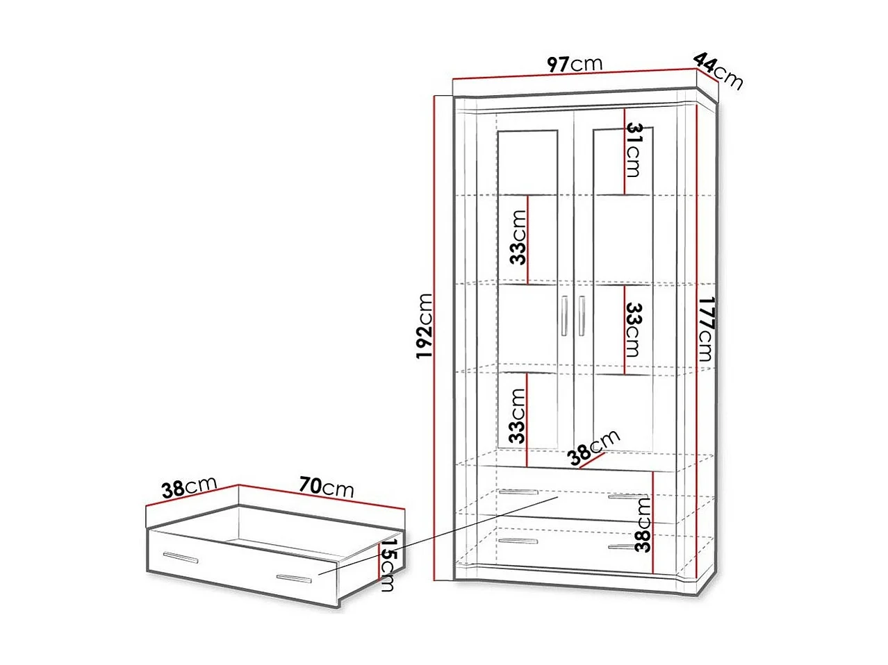Estantería Lircava 108, Con cajones|Con puertas|Cerrable, Vidrio|Aglomerado laminado,