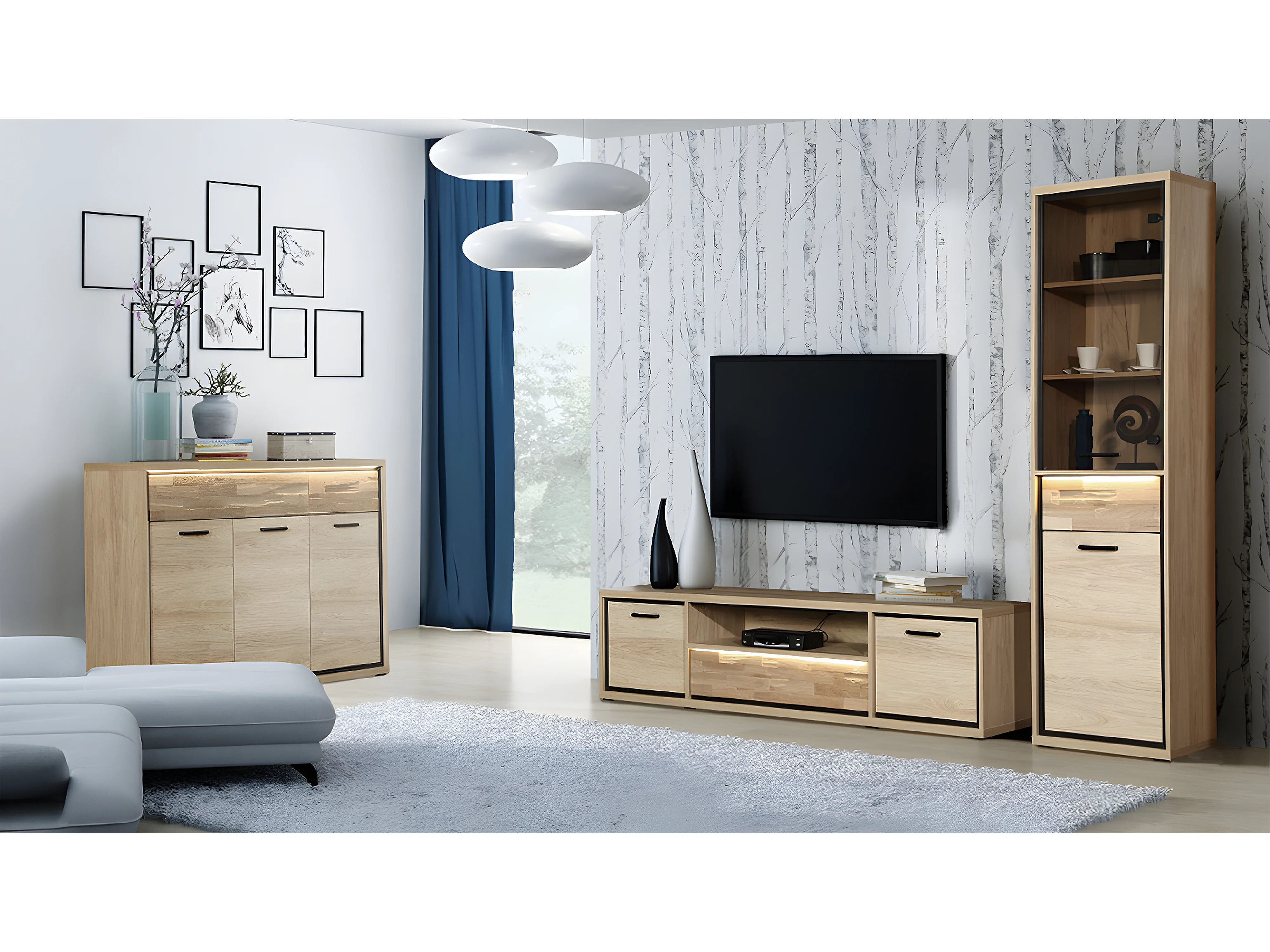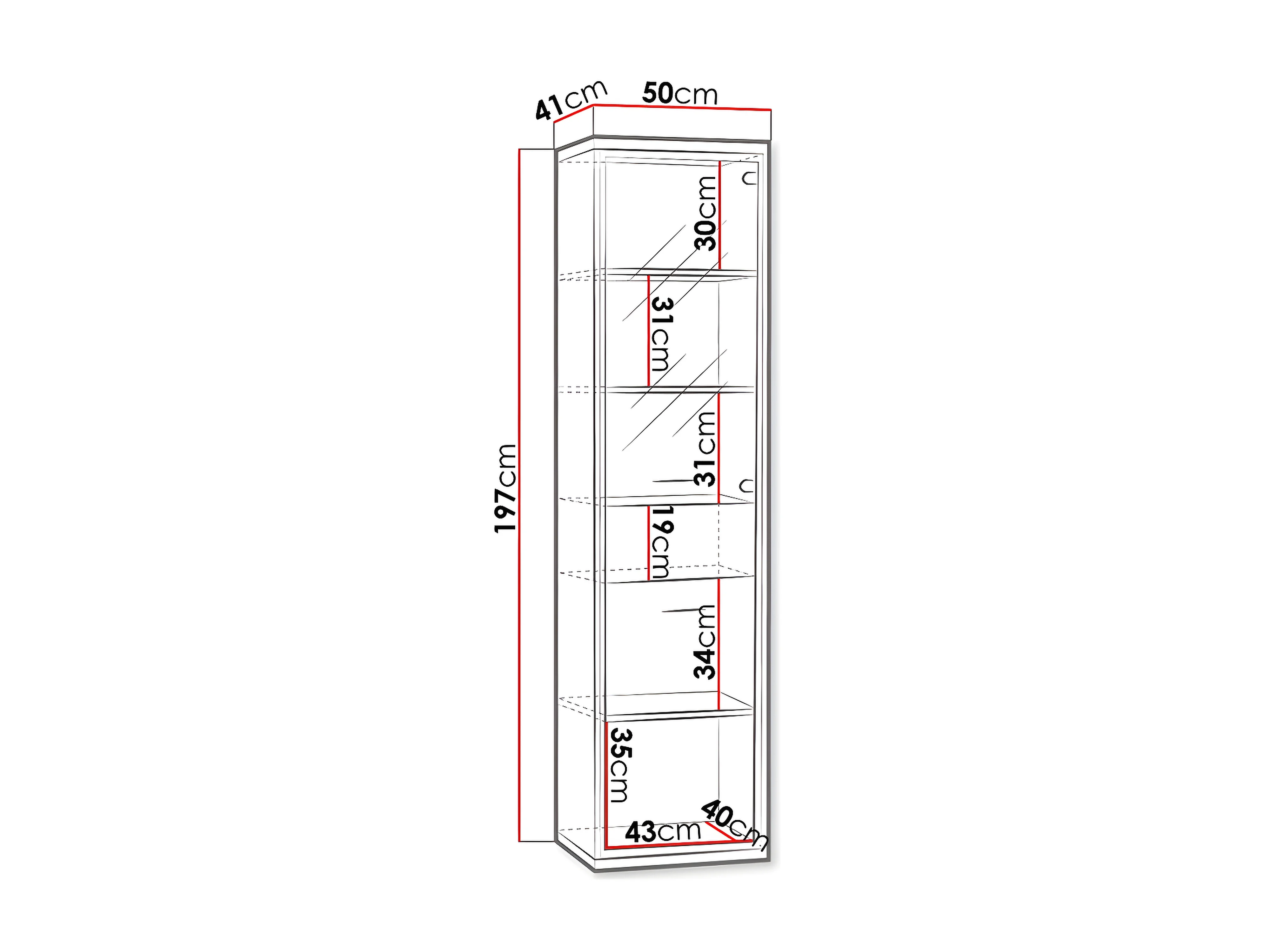 Estantería Lomsore 106, Cerrable|Con puertas, Vidrio|Aglomerado laminado, 190x70x41cm