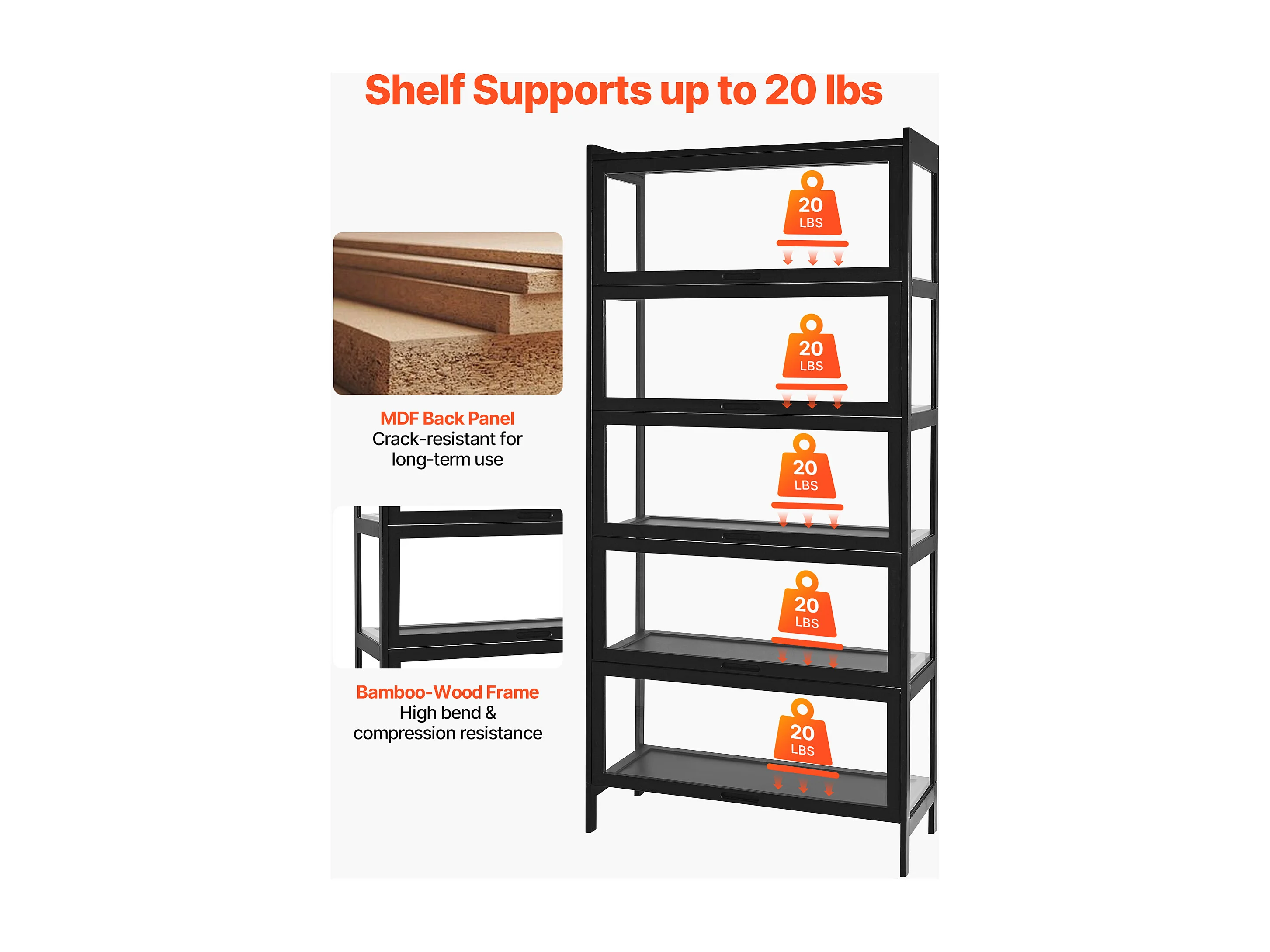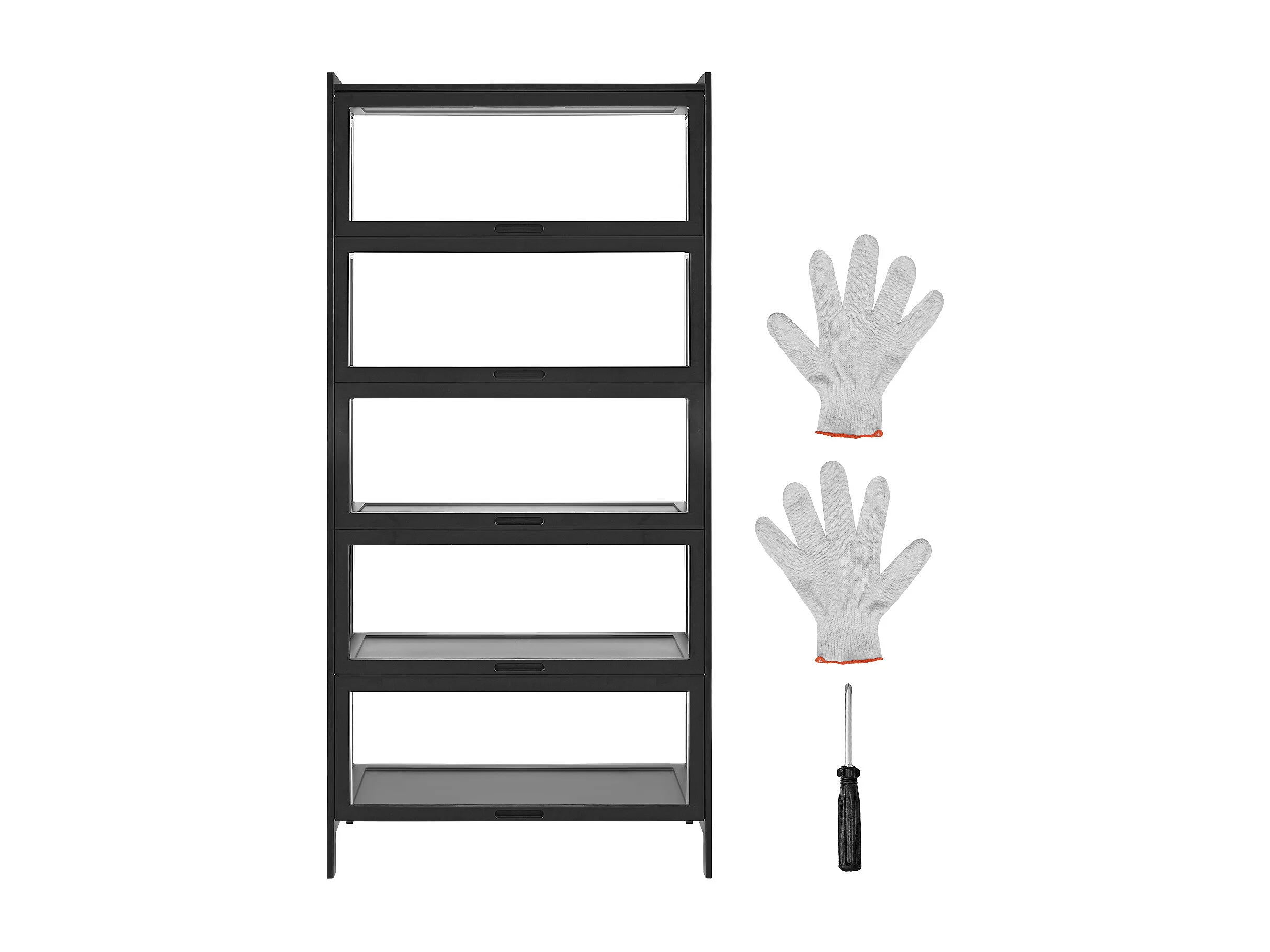 Vitrina de cristal de 3 estantes con puerta, estantería independiente para sala de estar, dormitorio y oficina, 42 x 36 x 125 cm, color negro