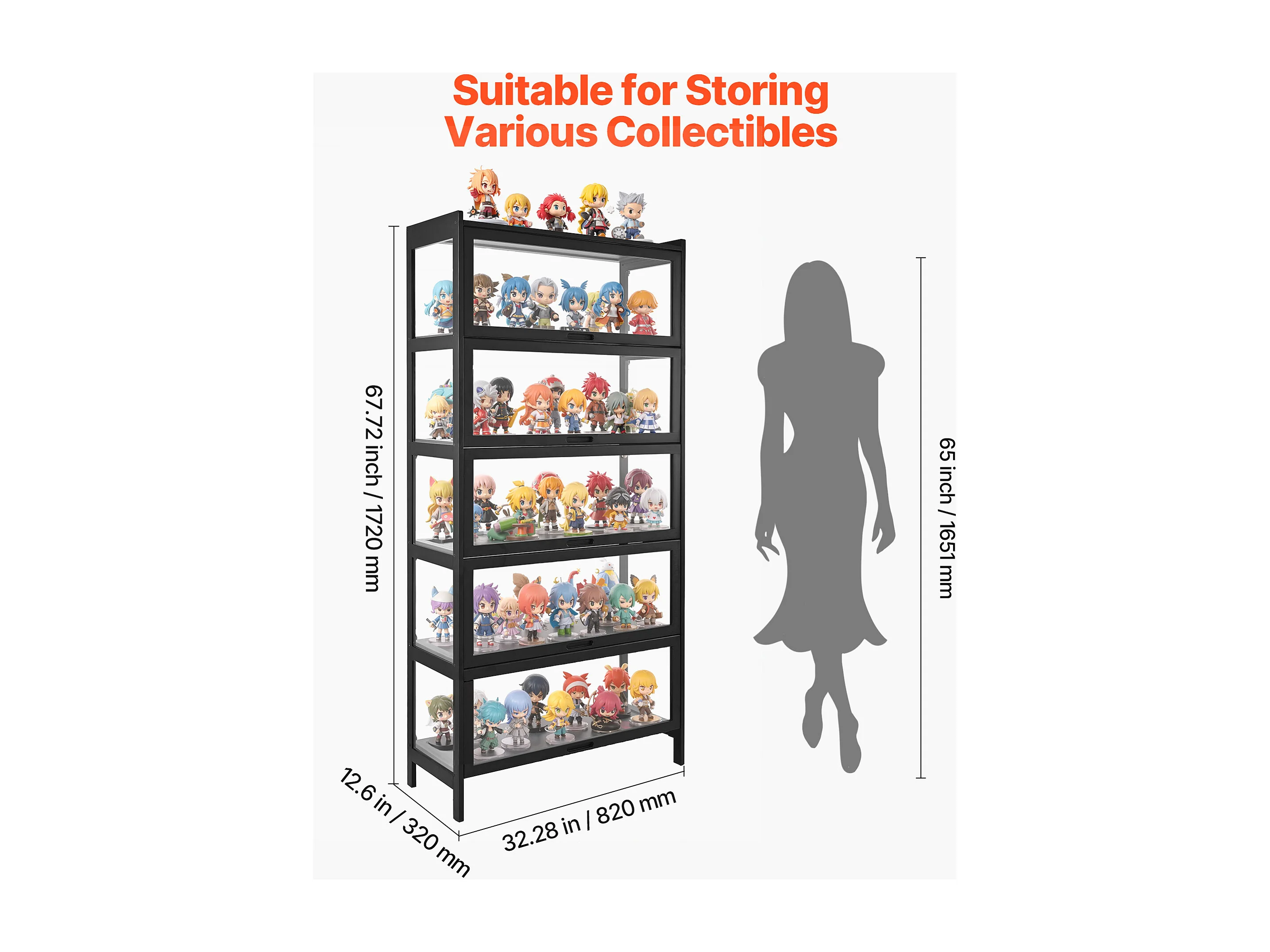 Vitrina SucceBuy para Colección con Puertas de Acrílico, Armario de Presentación 172 cm de Alto y 5 Niveles, Exhibidor para Antigüedades en Madera Natural