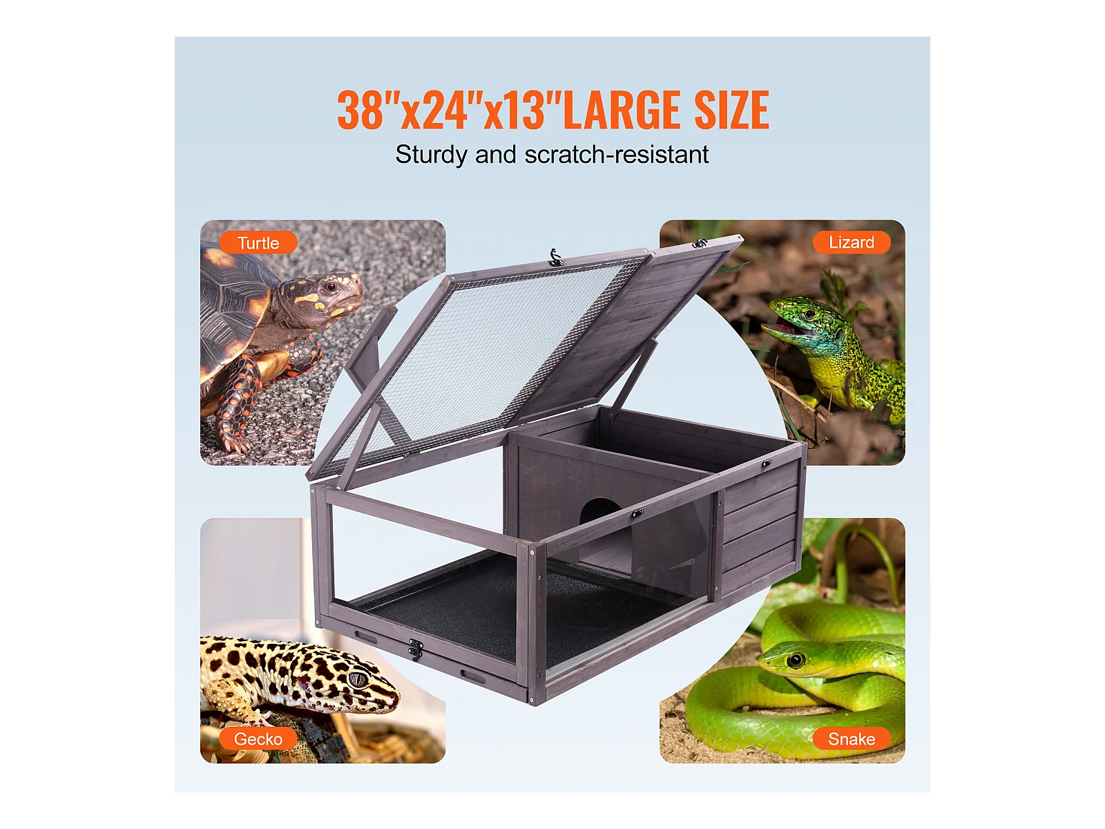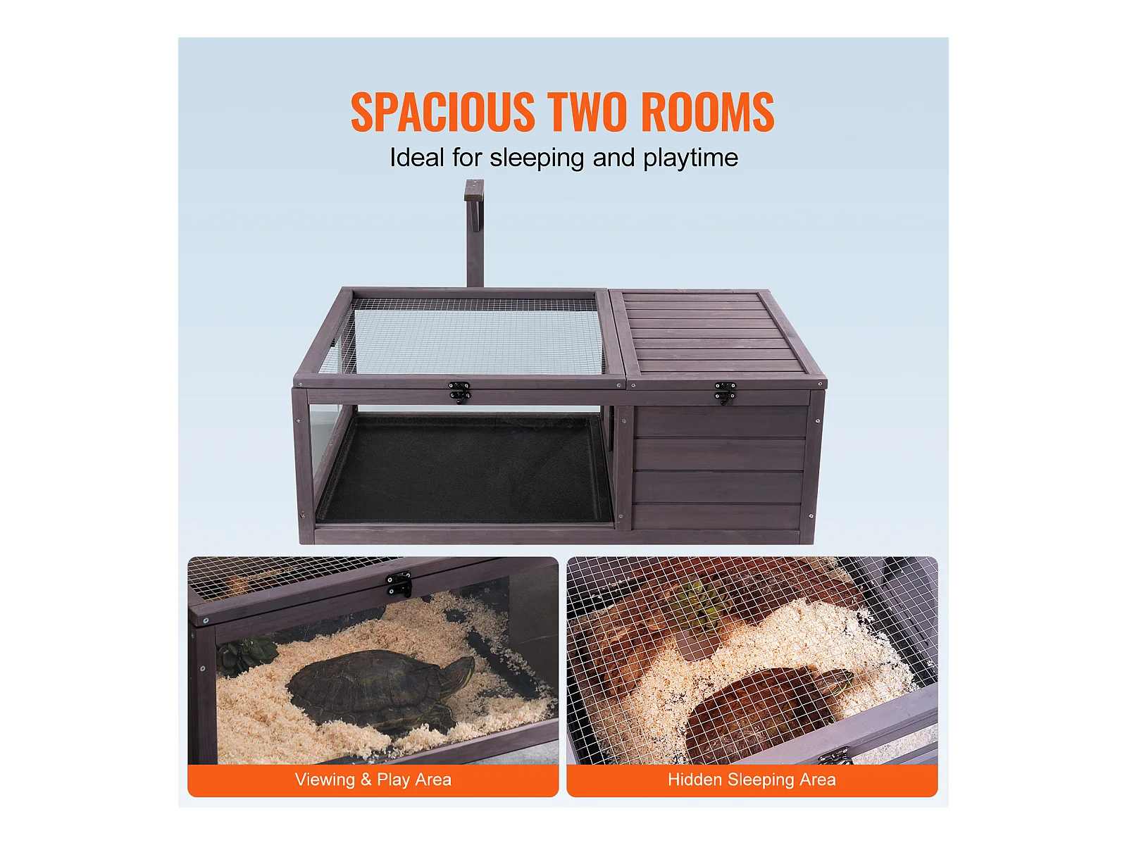 Vivario de Reptiles, SucceBuy Casa de Madera para Tortugas, 96,5 × 61 × 33 cm, 2 Piezas, Jaula para Interior y Exterior