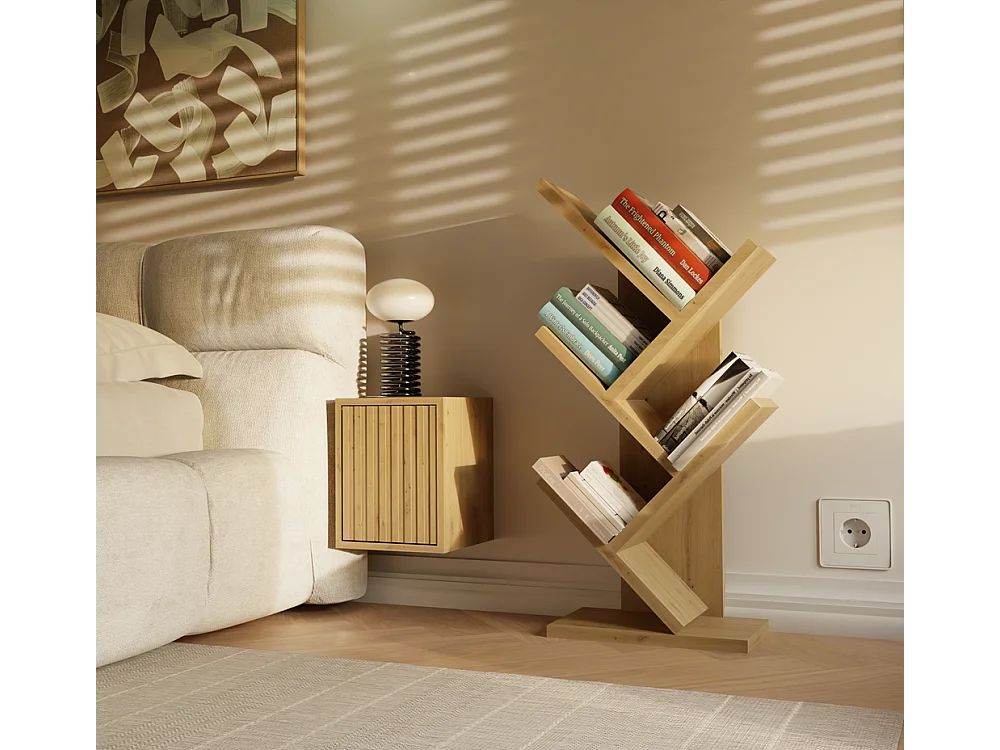 VIVIE - 4 estantes inclinados - 61 x 26,5 x 15,5 cm - Almacenamiento de libros