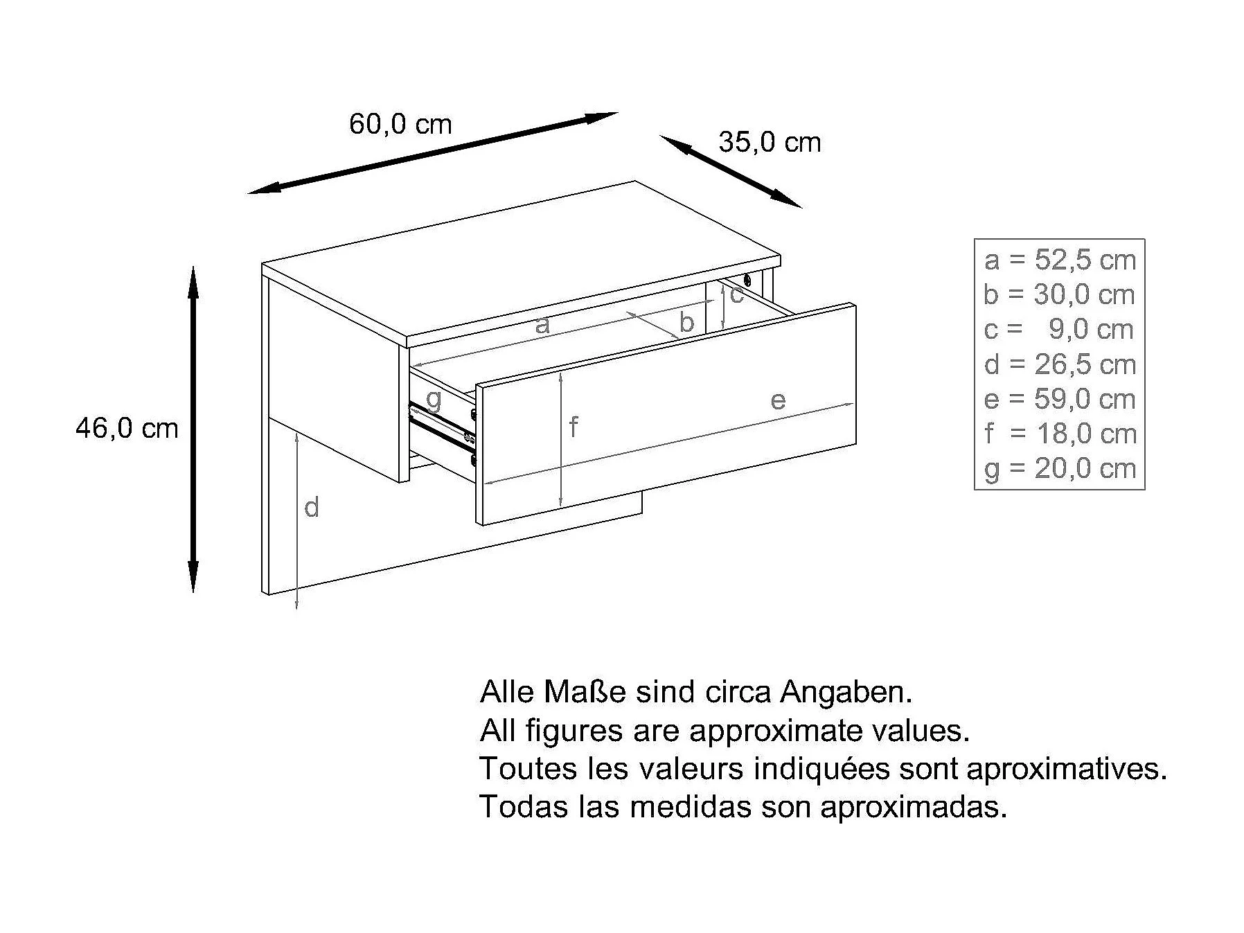 Vladon Mesita de noche Sleep, Cómoda de noche con Cajón para Montaje en Pared, Blanco mate/Blanco mate (60 x 46 x 35 cm)